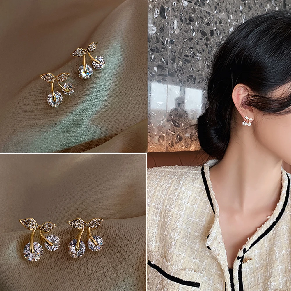Круглые блестящие модные милые серьги-гвоздики с цирконом в виде вишни для женщин, простые женские украшения, подарок для женщин