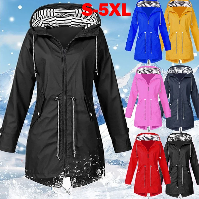 Куртка женская с капюшоном, базовая Водонепроницаемая ветровка на молнии, легкие карманы, дождевики