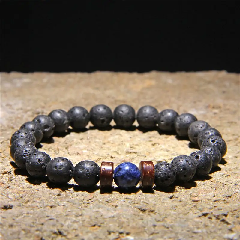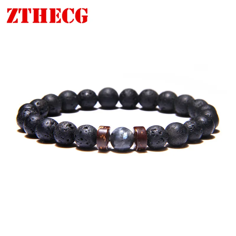 Модный мужской браслет из бисера натуральный лавовый камень деревянный чакра диффузор браслет 12 созвездий ювелирные изделия панк браслеты для женщин