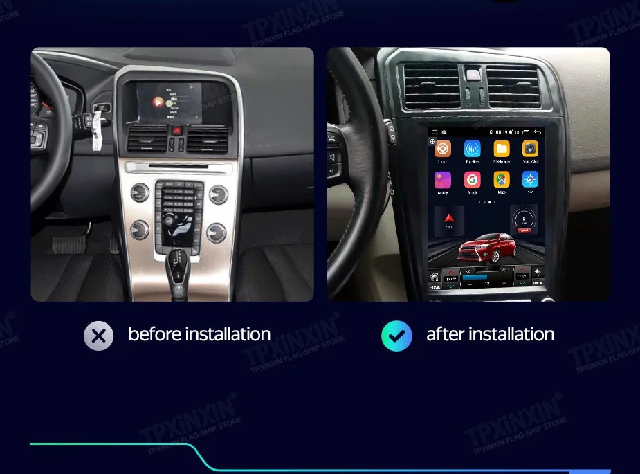 Для Volvo XC60 2009 - 2017 черный и серебристый1. Климат будет отображаться на новом дисплее после установки.2. Включает 4G LTE3. Включает беспроводную carplay4. Включите чип DSP для улучшения качества звука