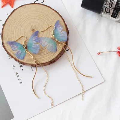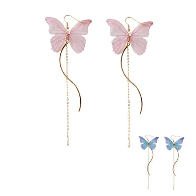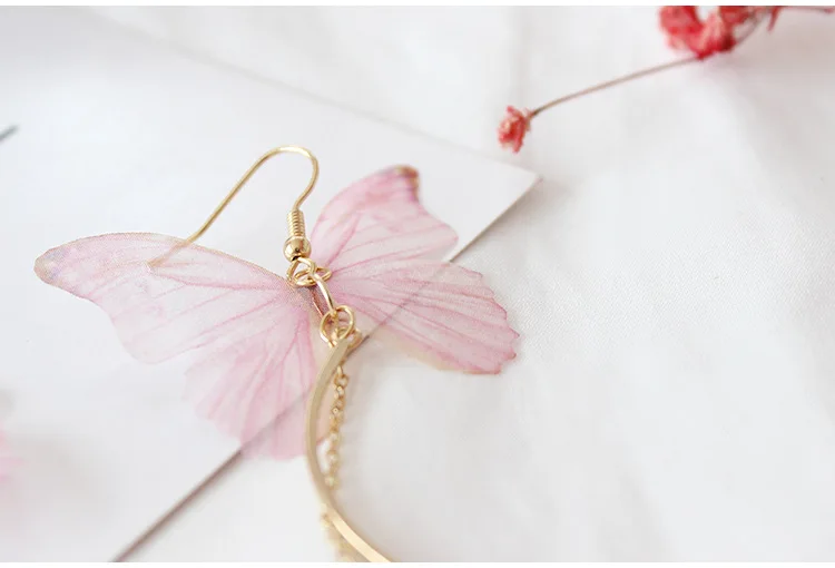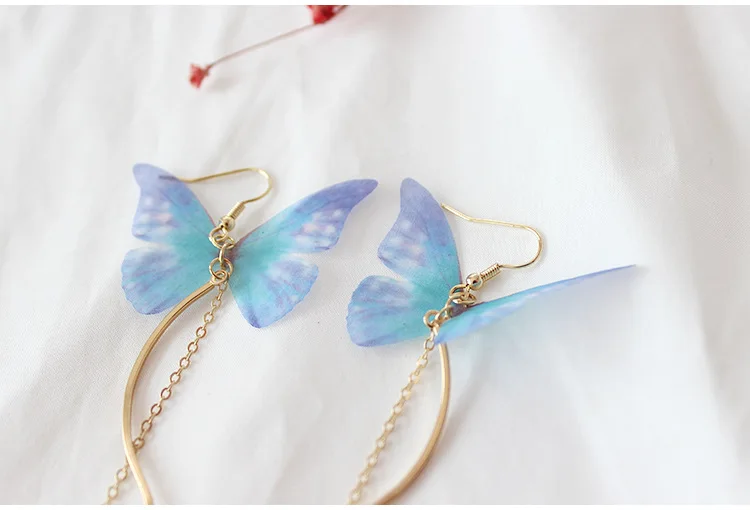 Женские серьги в стиле феи, розовые и синие серьги в виде бабочек из марлевой ткани
