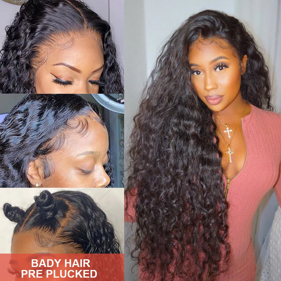 Парик из натуральных волос крупными волнами, на прозрачной сетке, без клея, 13 х4