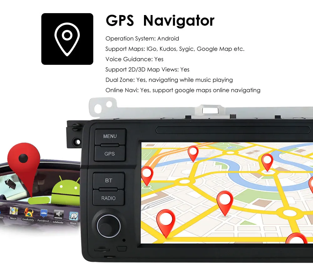 Автомагнитола 1Din мультимедийная с GPS-навигацией для BMW E46 M3 R...