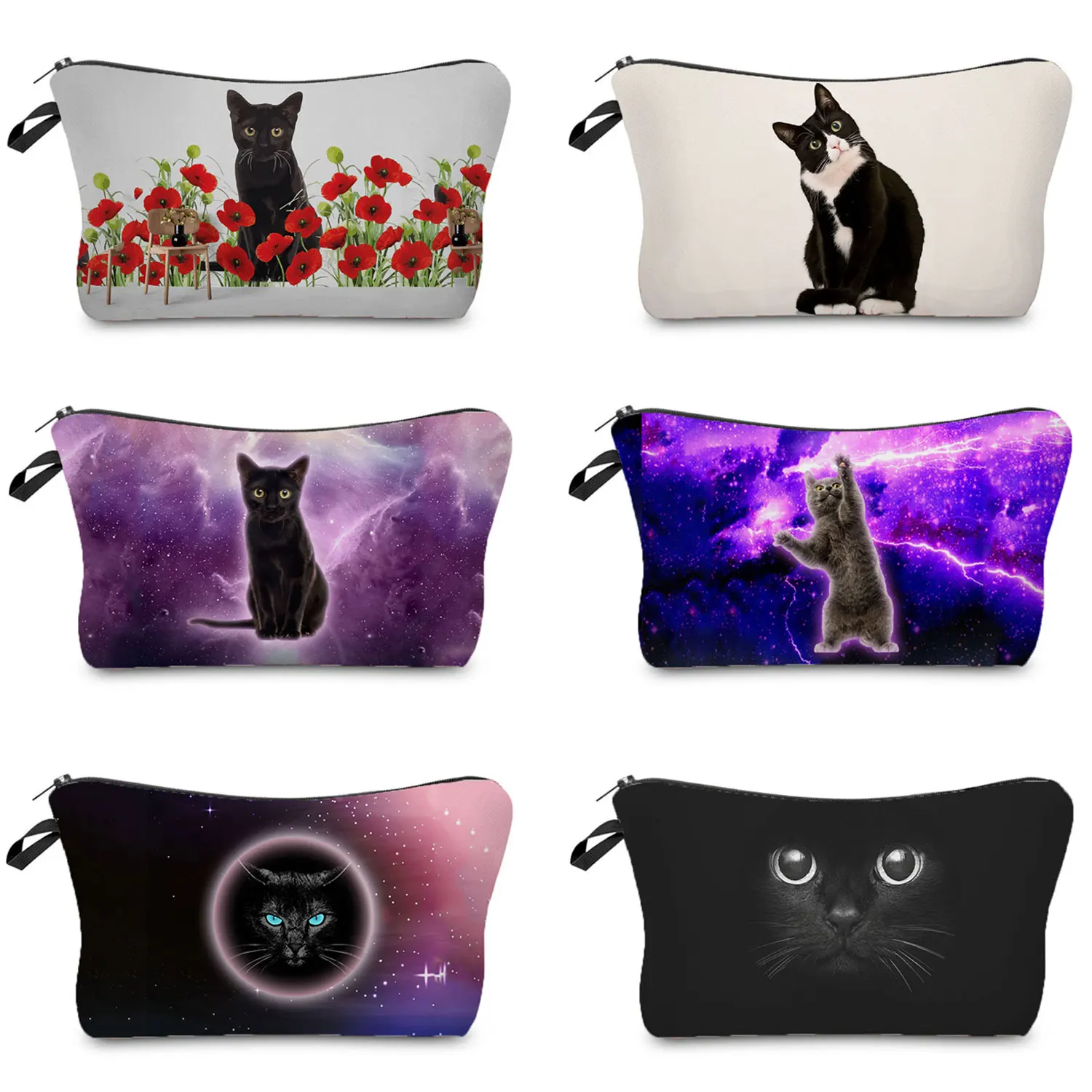 Модная черная сумка для макияжа с большими глазами и принтом кота, милый студенческий чехол-карандаш, Водонепроницаемый Многофункциональный практичный Кошелек для монет на открытом воздухе