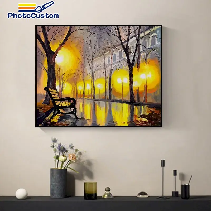 PhotoCustom Diy Краска по номерам, Осенний пейзаж для взрослых, картина по номерам, акриловая Ручная Краска на холсте, домашний подарок сделай сам