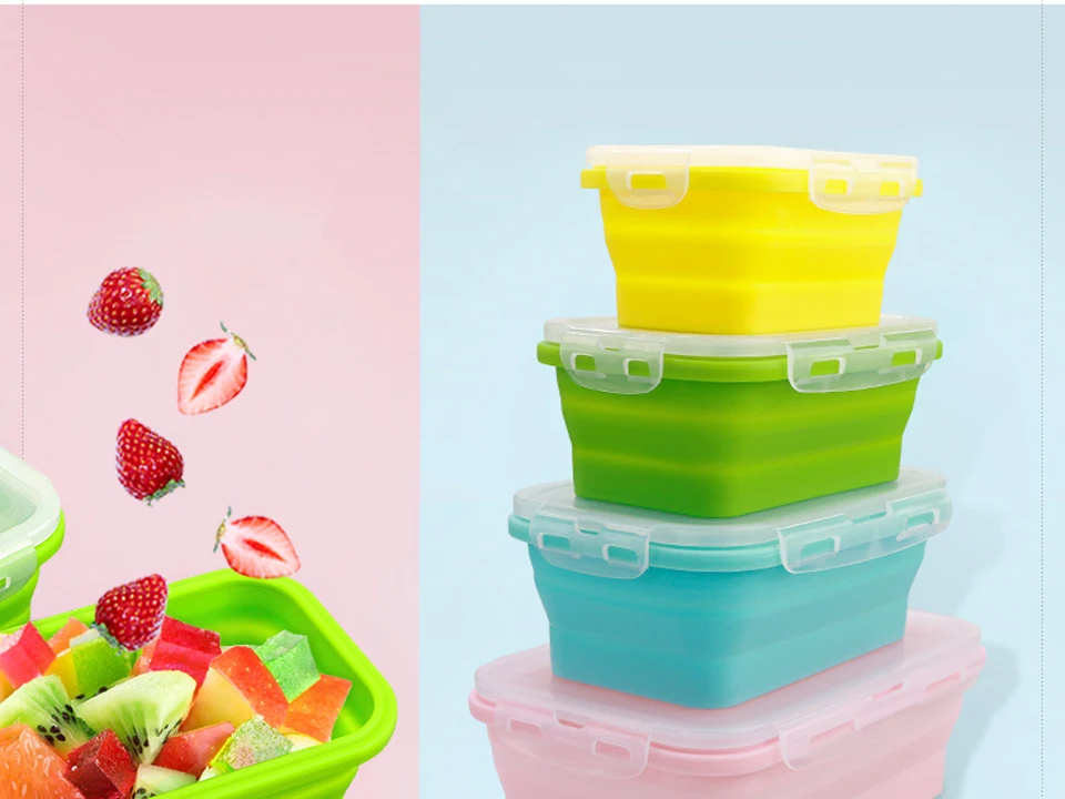 4 размера, Силиконовый складной Ланч-бокс, пищевой контейнер, Порта...