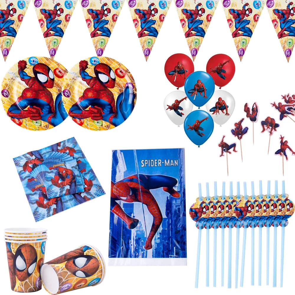 105 шт., вечерние принадлежности для человека-паука, одноразовый набор посуды, украшения для дня рождения, бумажные тарелки и стаканы, салфетки для торта, соломинки для мальчиков
