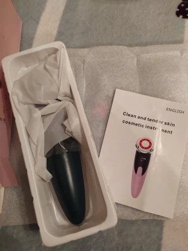 . Пришёл быстро, за 15 дней с заказа и до ближайшей почты. Упаковано было аккуратно, но коробка мятая. Сам прибор не имеет трещин, сколов. Лёгкий. Есть инструкция, но не на русском, зато с картинками))). Заряжен, но поставила на зарядку и проверила работоспособность: при включённом режиме при прикосновении к лицу идёт небольшая вибрация и еле еле чувствуется покалывание. Я первый раз такой прибор заказывала-буду разбираться, но пока нравиться!!!