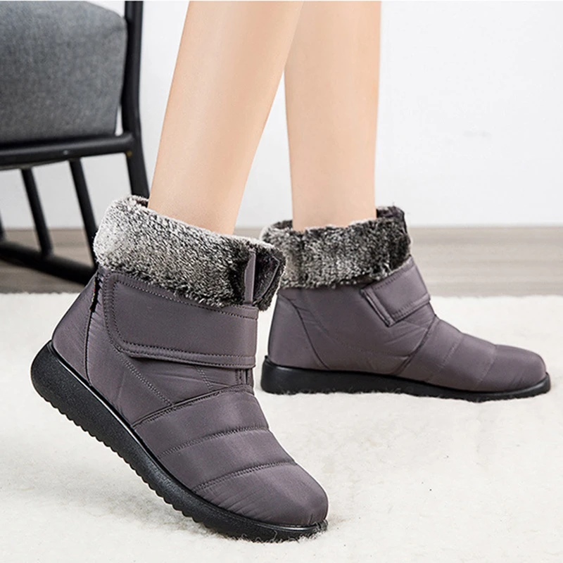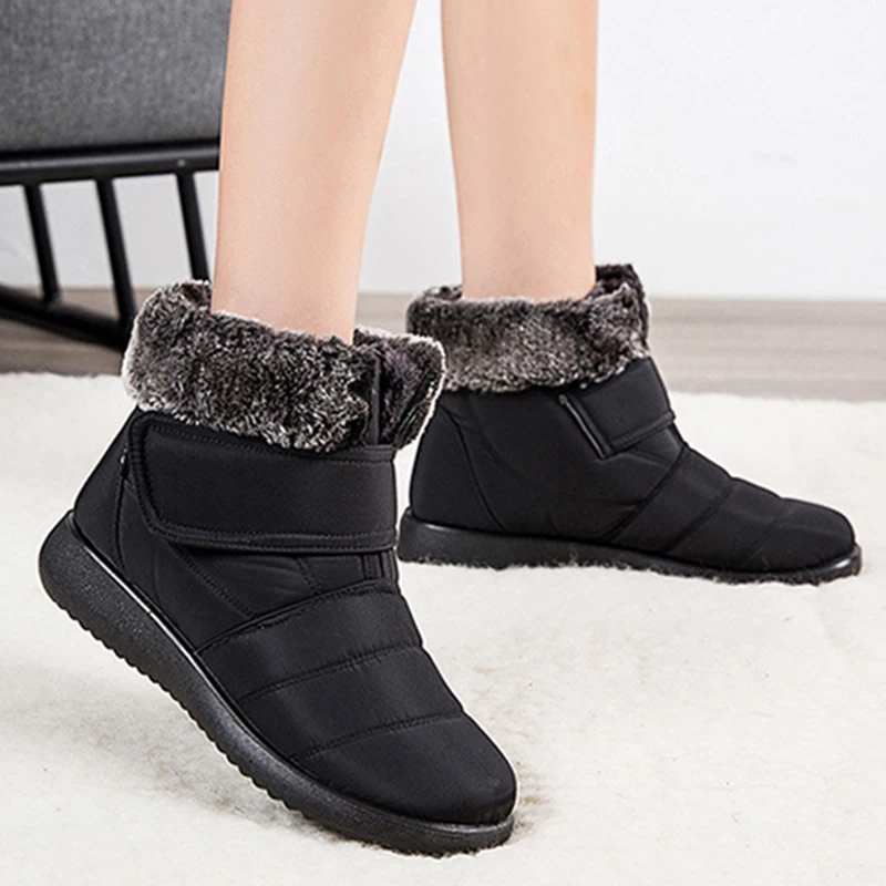 Женские Водонепроницаемые ботинки на меху, повседневные ботильоны н...