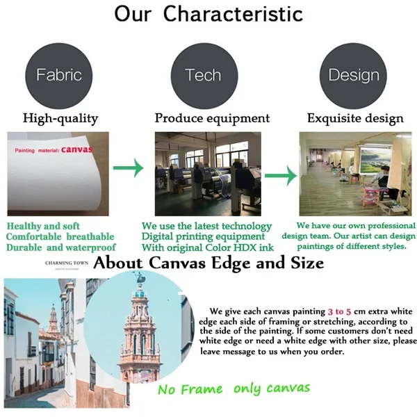 4. Этот холст отличного качества без внутренней и внешней рамки, чтобы сохранить стоимость доставки, но этот размер является обычным размером фоторамки, и вы можете легко получить готовую рамку.