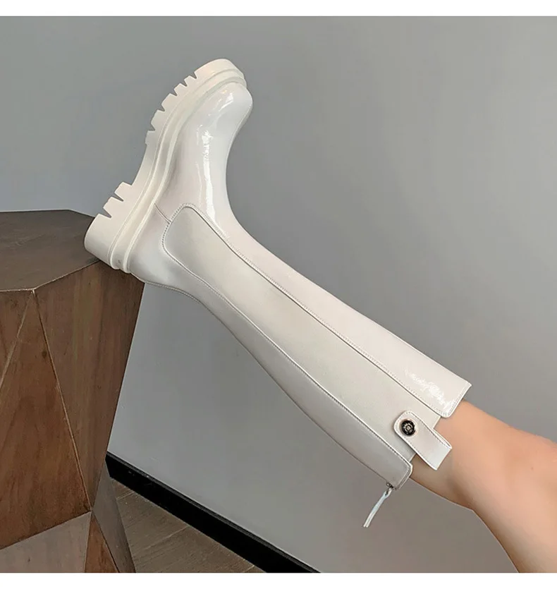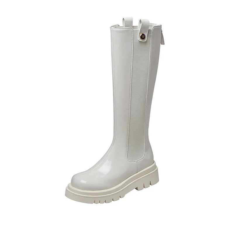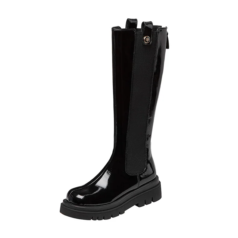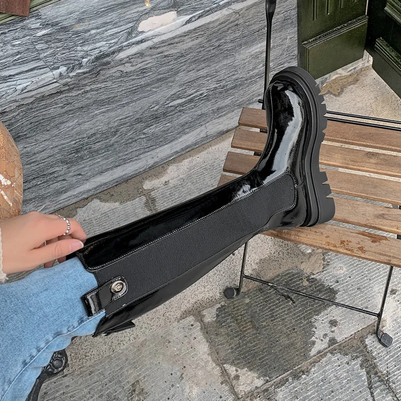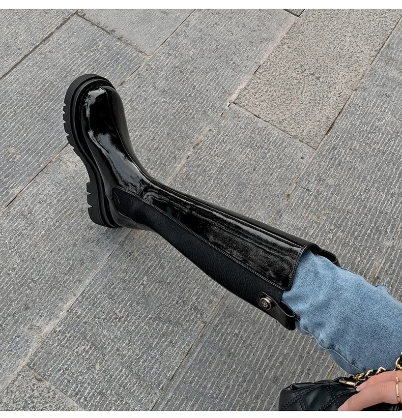 Ботинки женские рыцарские на платформе, с круглым носком, на молнии сзади