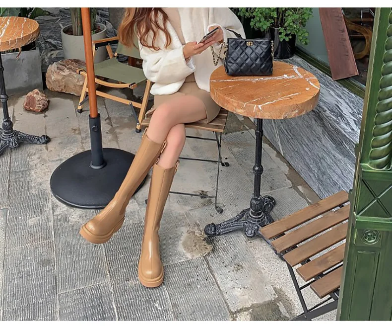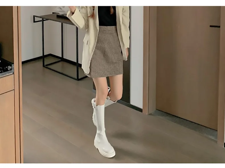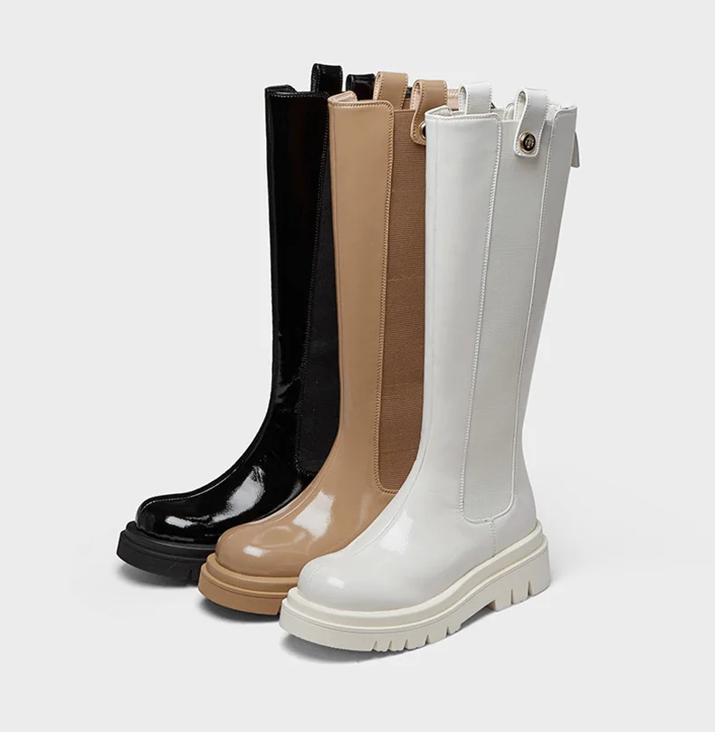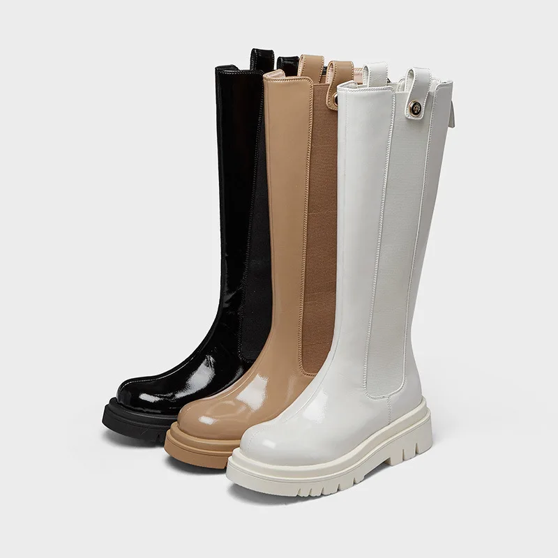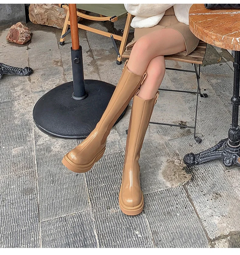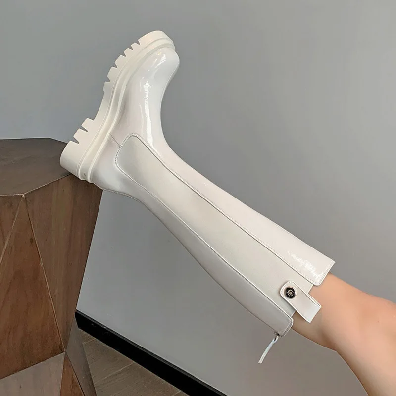 Ботинки женские рыцарские на платформе, с круглым носком, на молнии сзади
