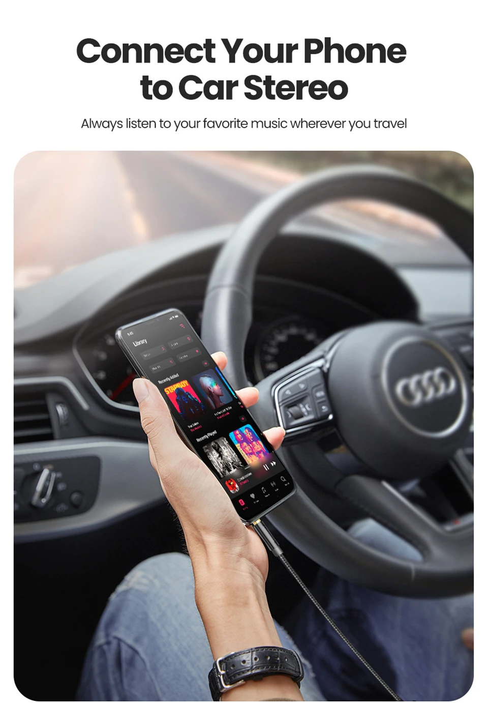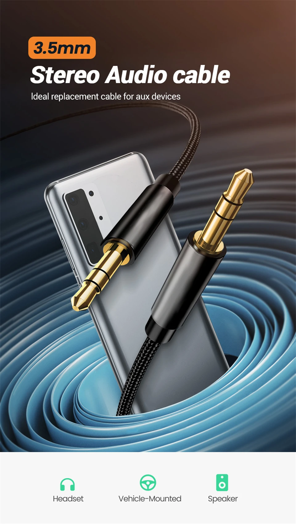 Аудиокабель UGREEN 3,5 мм, стерео вспомогательный кабель AUX, позол...