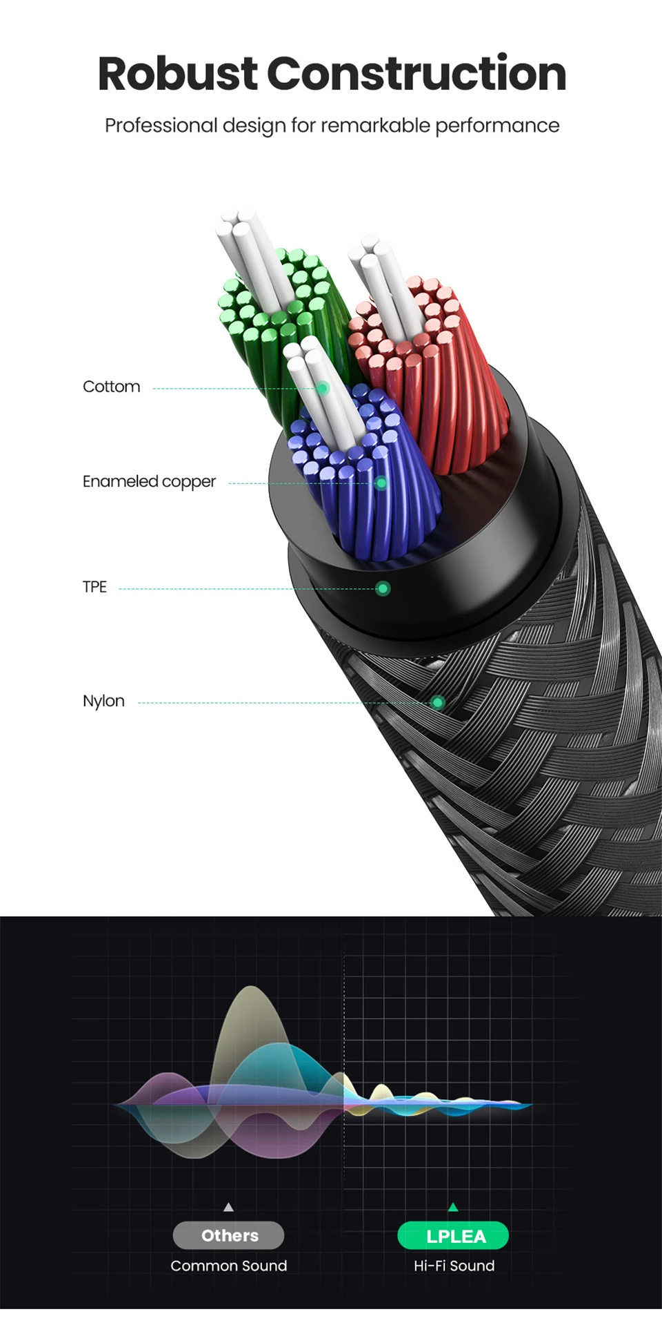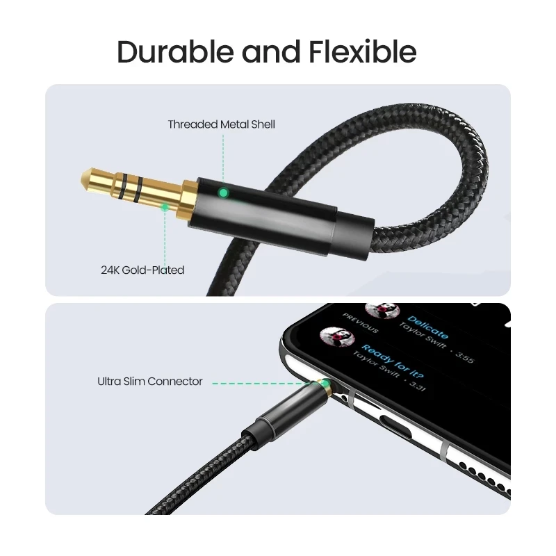 UGREEN 3,5 мм Adudio кабель стерео вспомогательный AUX шнур позолоч...