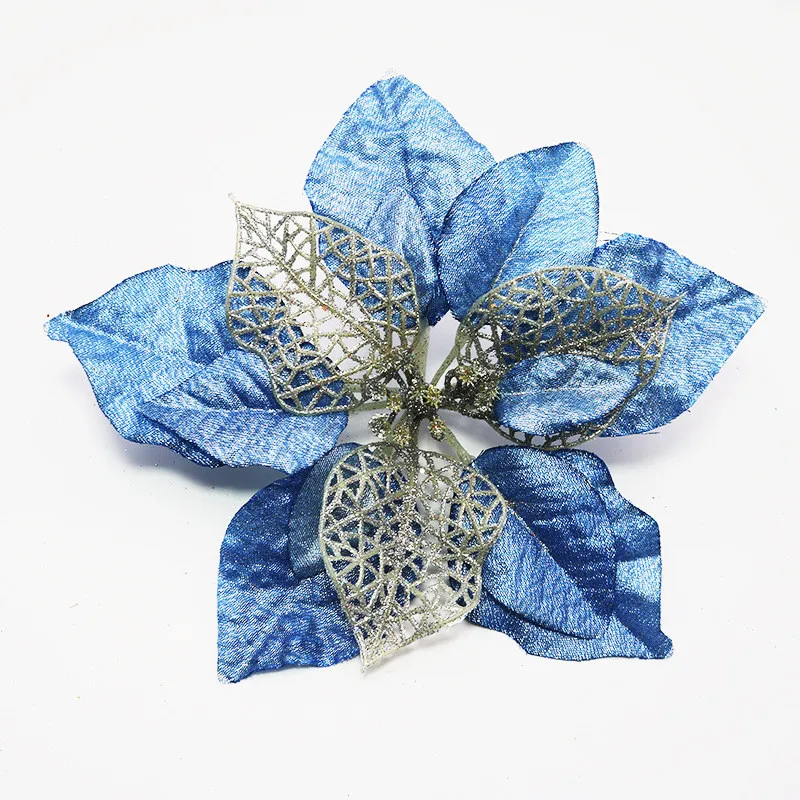 Искусственные Рождественские цветы, блестящие искусственные цветы, ...