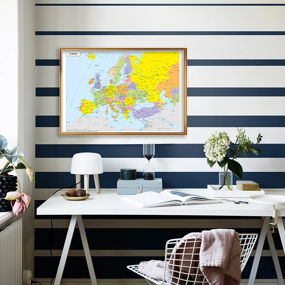 59*42 см политическая карта Европы на французском языке нанесение краски распылением на холст винтажный настенный художественный плакат школьные принадлежности для гостиной домашний декор