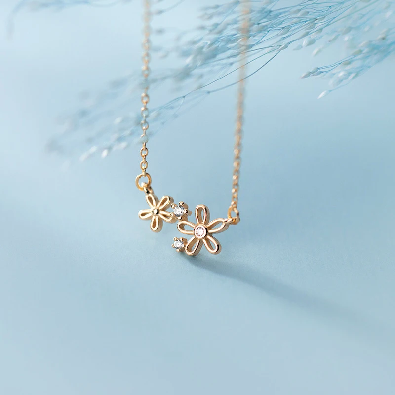 Ожерелье из серебра 925 пробы с ярким цветком, гладкий Блестящий По...