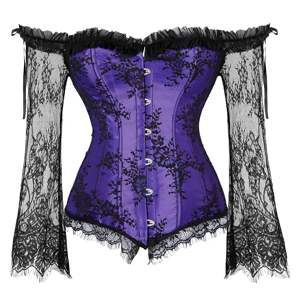 Корсет Sapubonva, бюстье, Топ для женщин с рукавами, винтажный стиль, викторианский Ретро Бурлеск, модный белый, черный