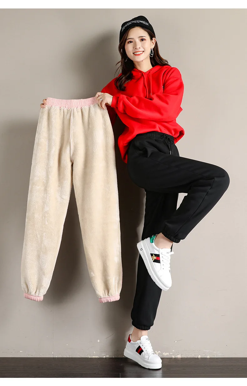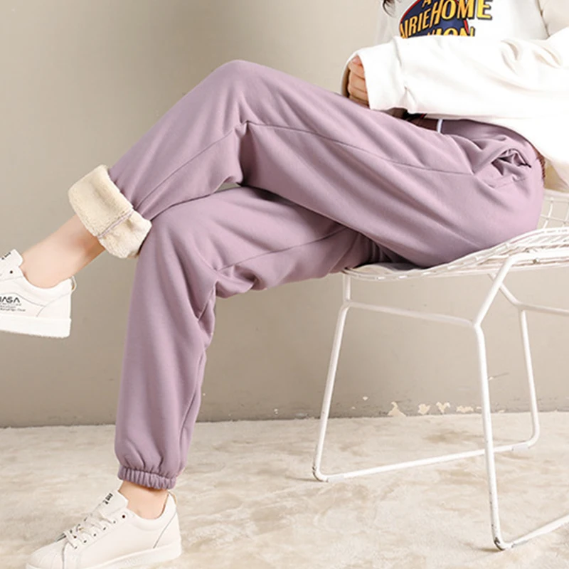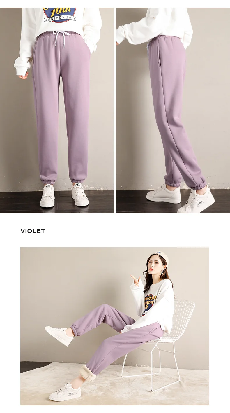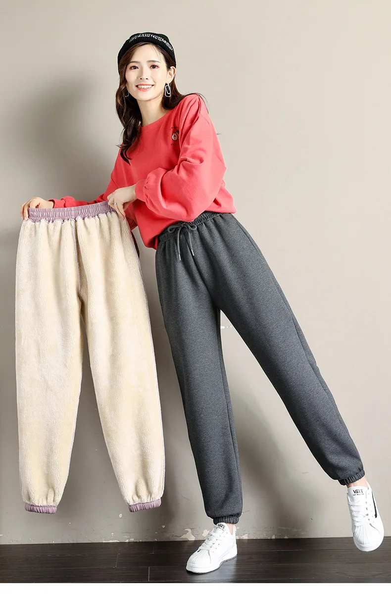 Модные женские зимние теплые длинные брюки GAUENEEN, плотные леггинсы из флиса, женские Однотонные эластичные повседневные спортивные брюки на шнуровке, 2021