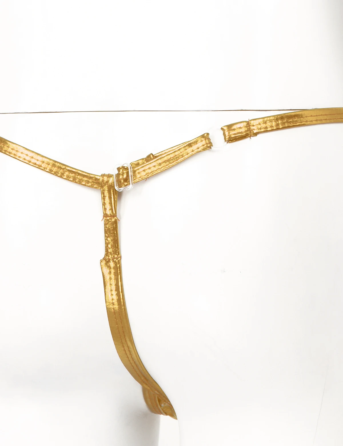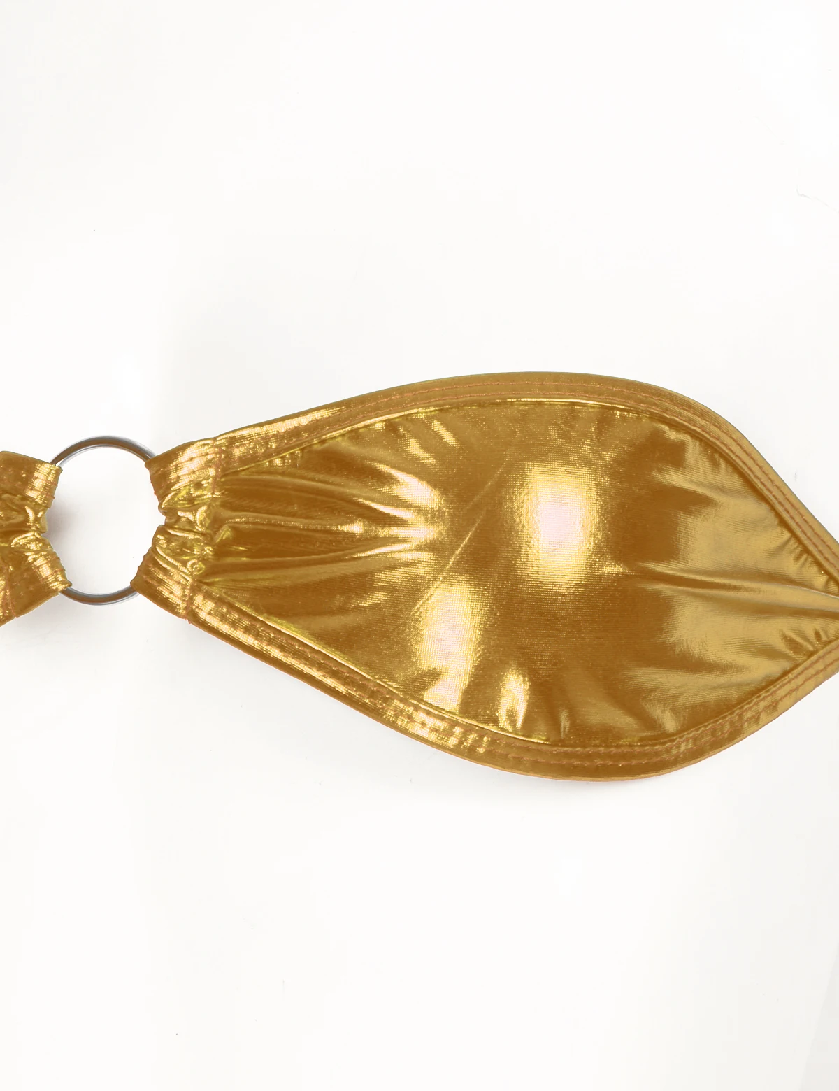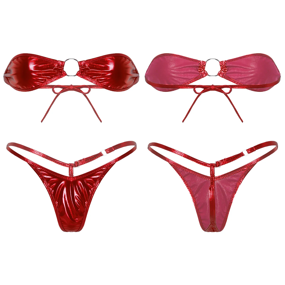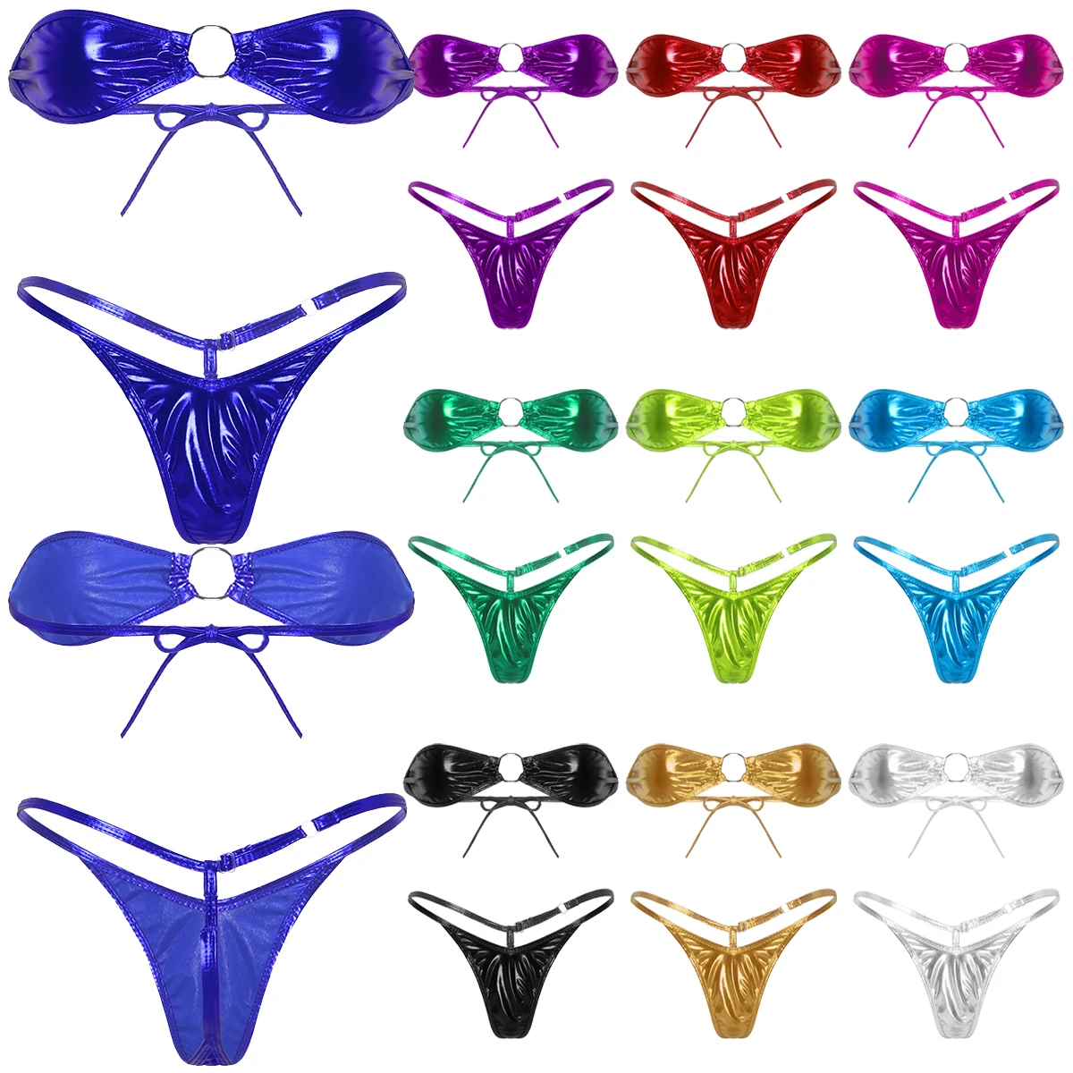Женский Блестящий микро-металлический брифский комплект без бретелек с завязкой сзади мини-Бюстгальтер Топ с стрингами трусы пляжное нижнее белье