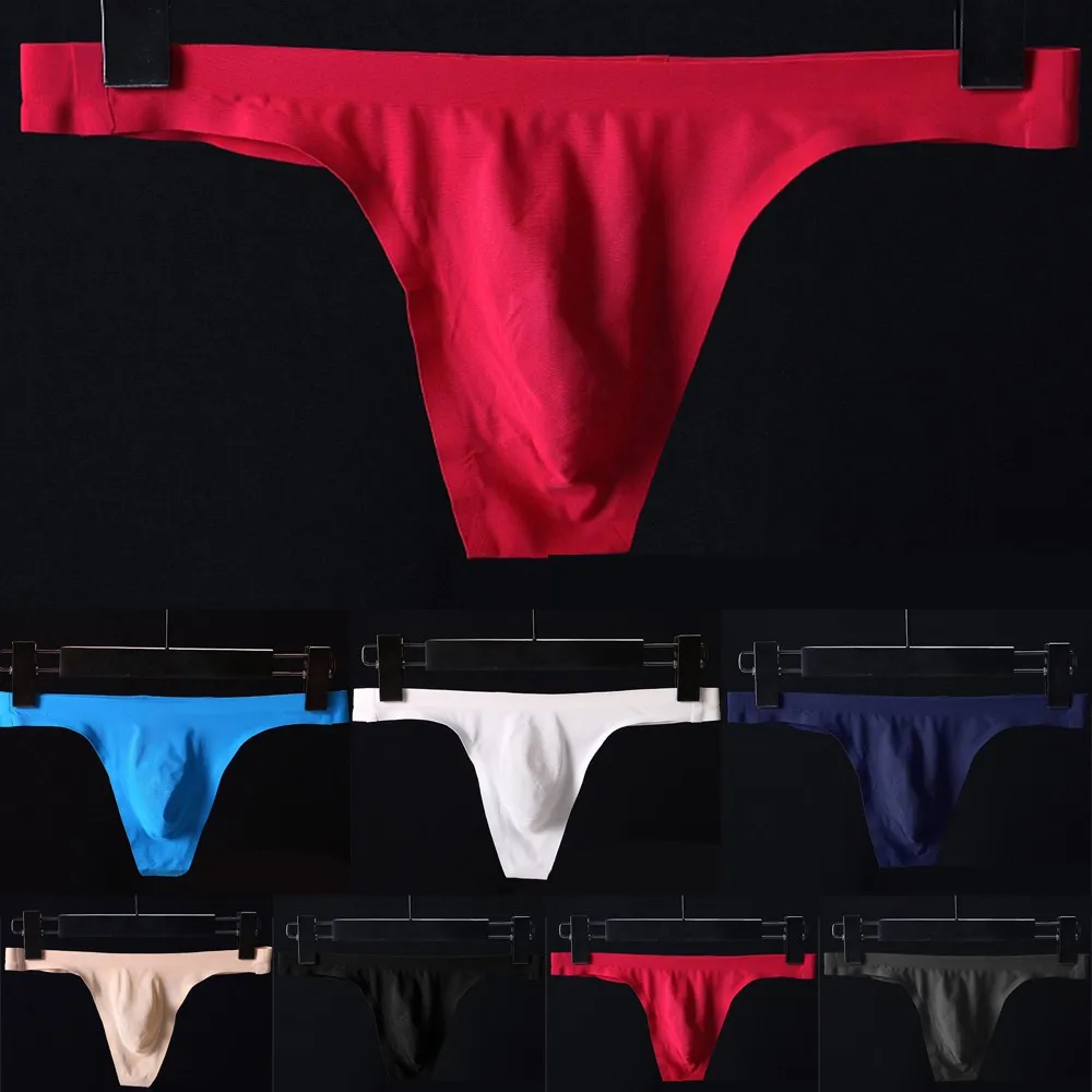 Мужское бесшовное дышащее нижнее белье из ледяного шелка g string, короткие сексуальные стринги с низкой посадкой и Т-образной спинкой, мужские трусы