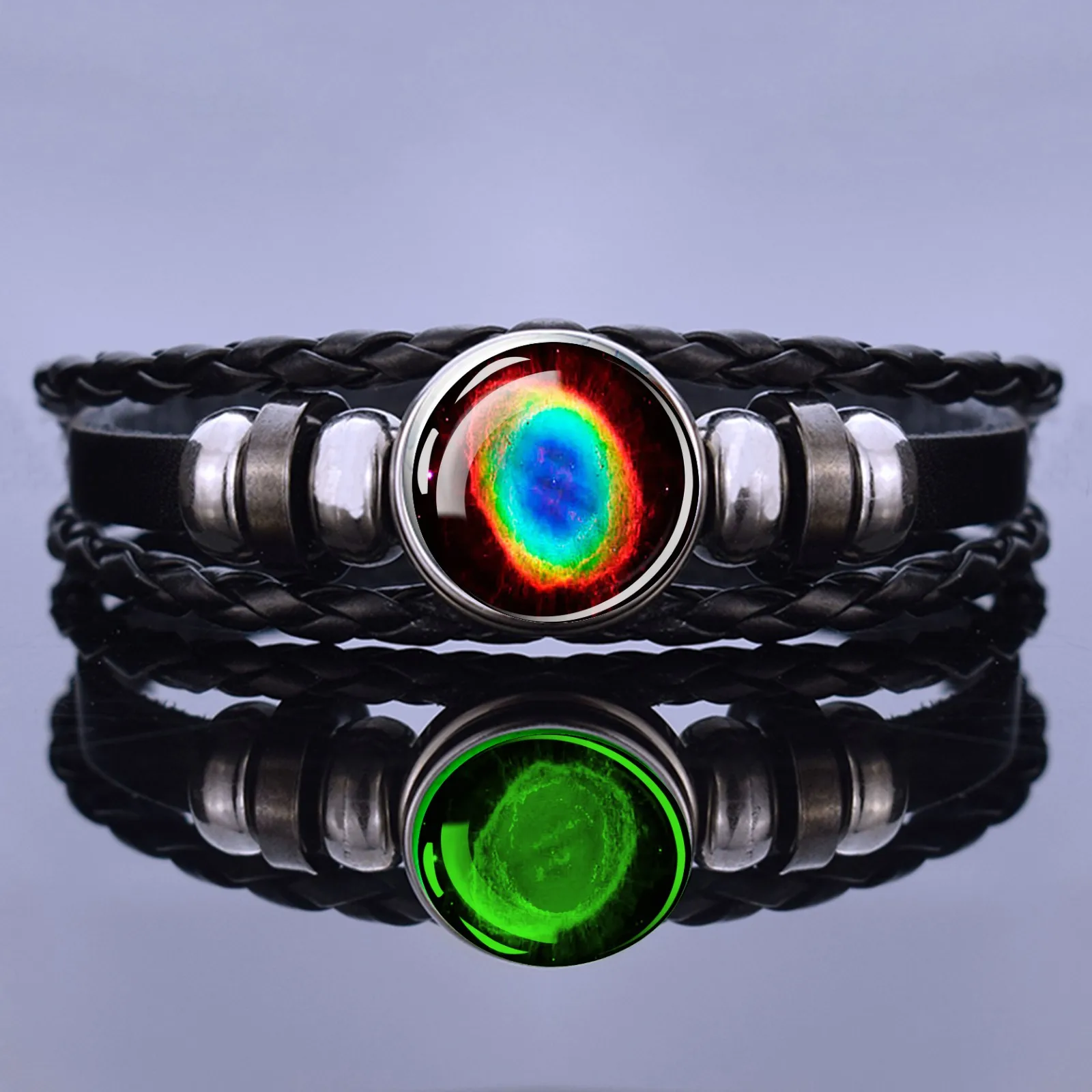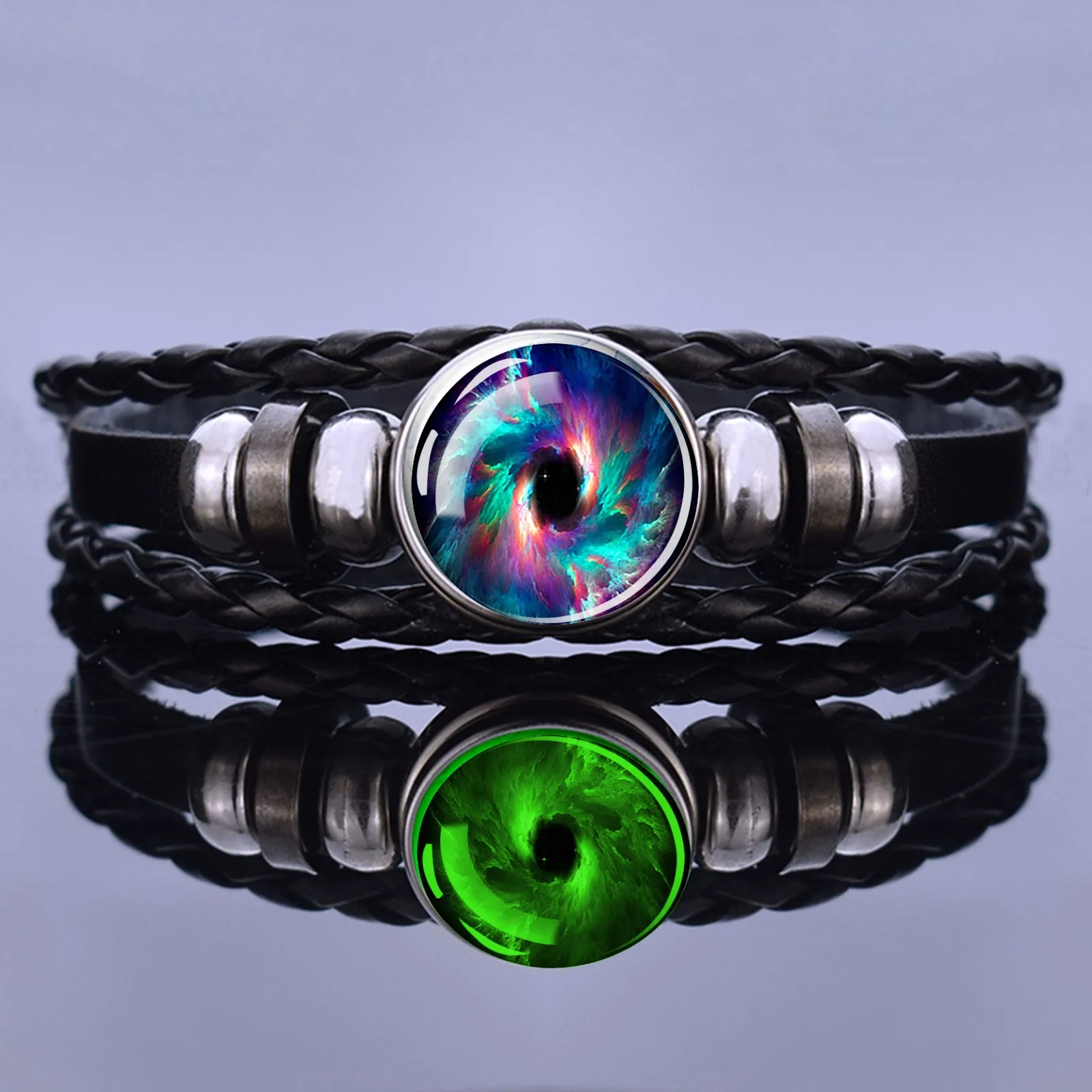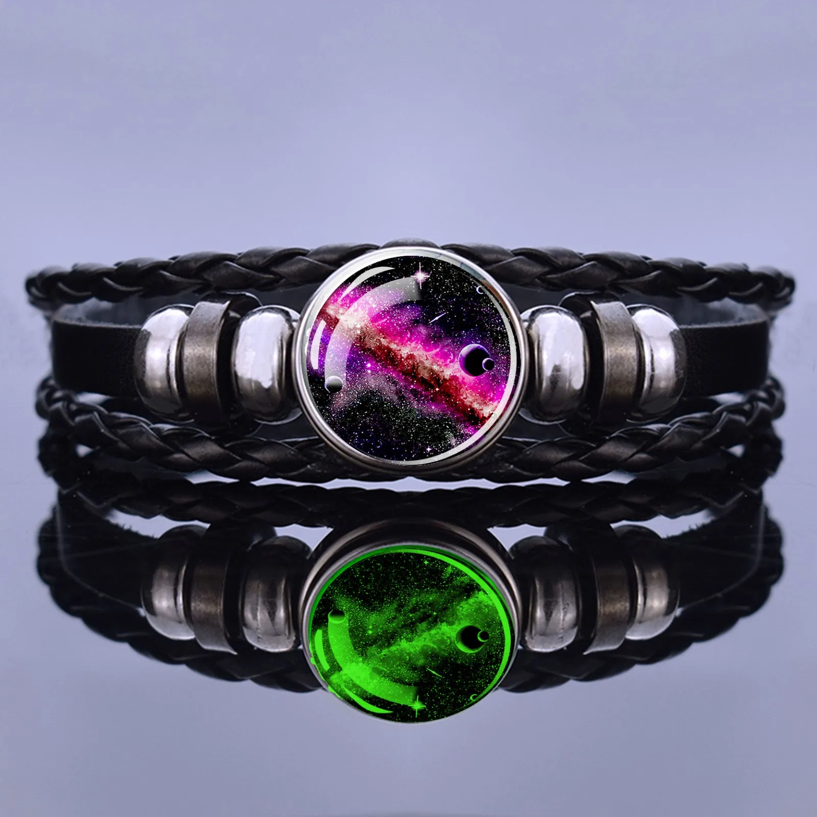 Браслет Esspoc Steampunk Galaxy для женщин и мужчин, ювелирные изделия, светящийся стеклянный кабошон, черные кожаные браслеты ручной работы, Pulseras Mujer