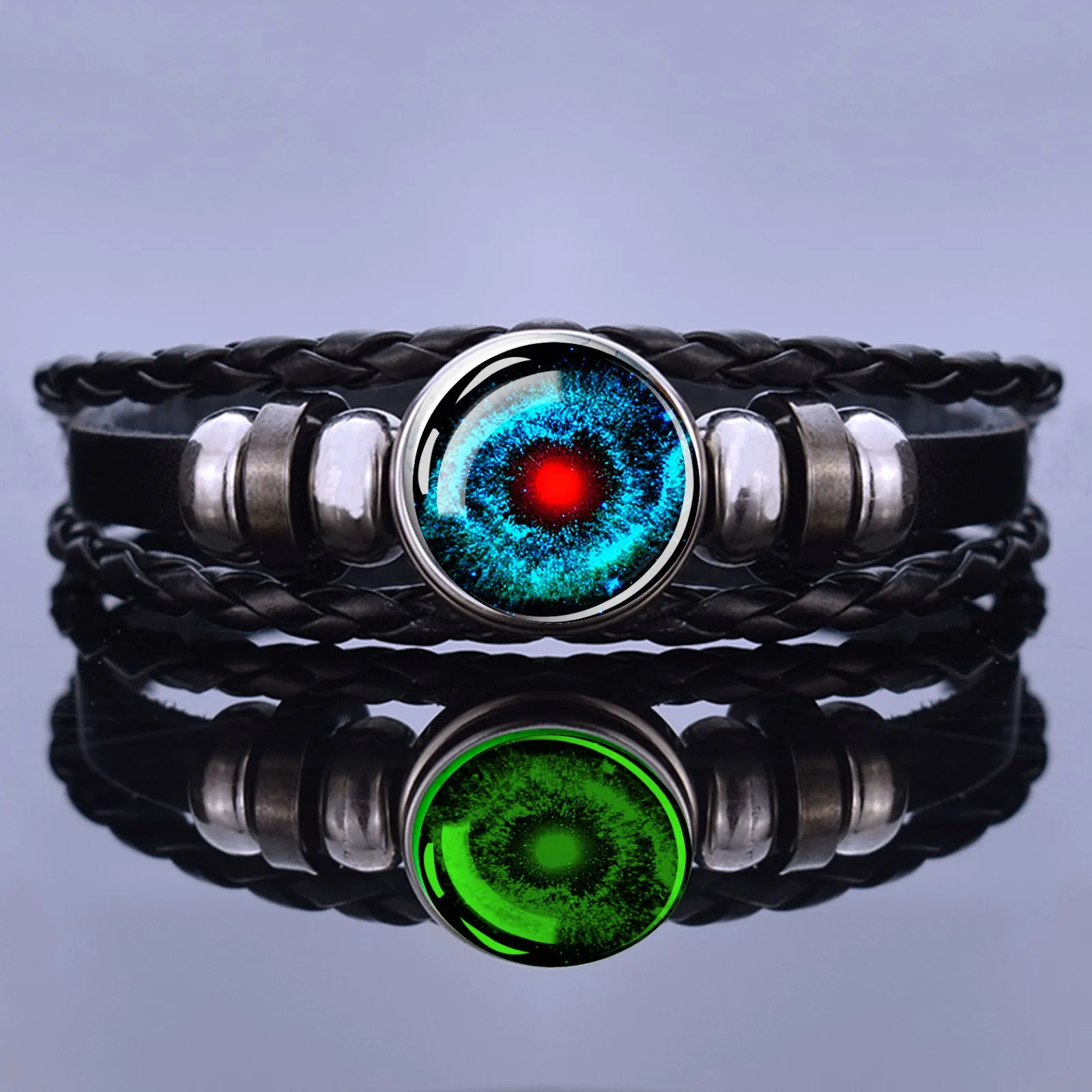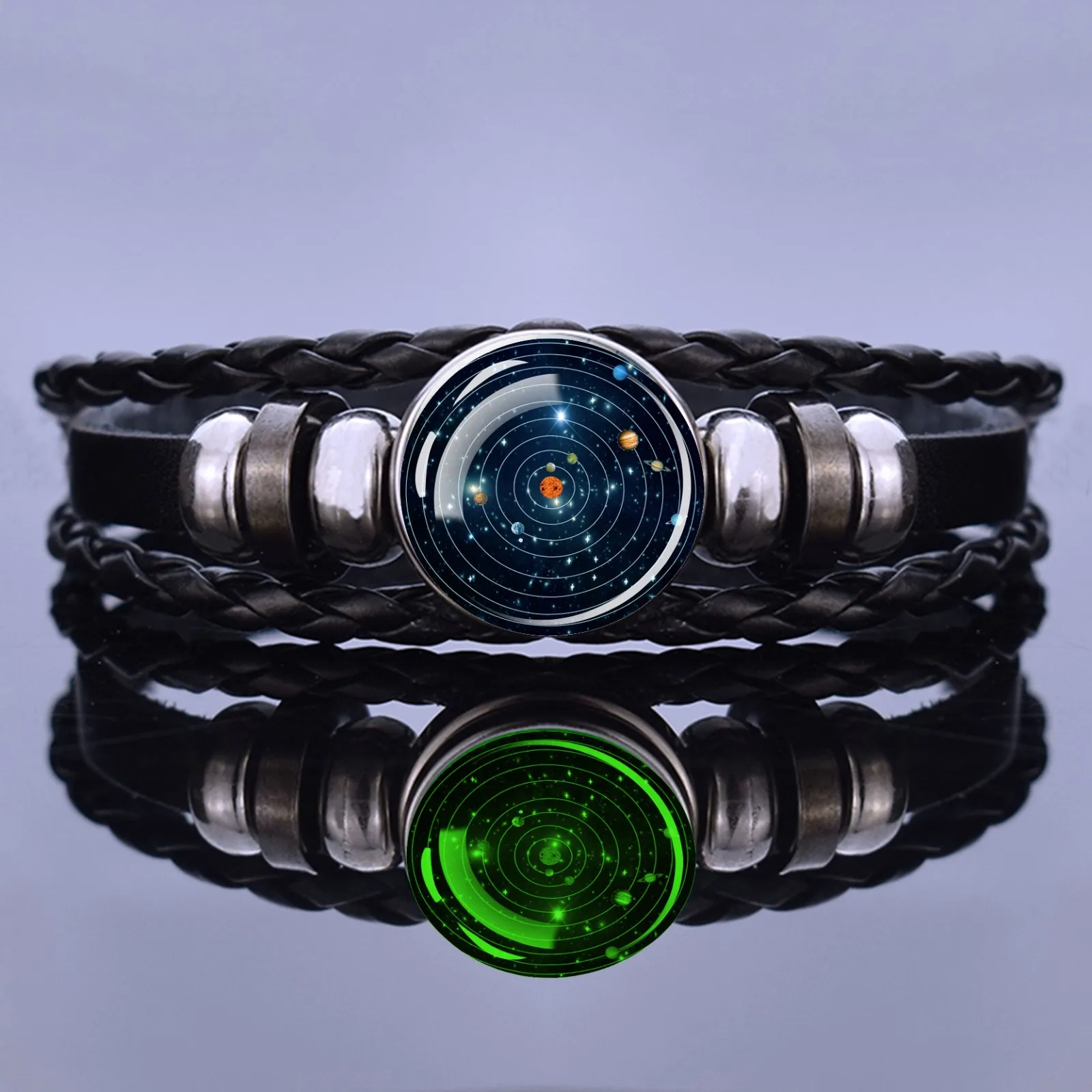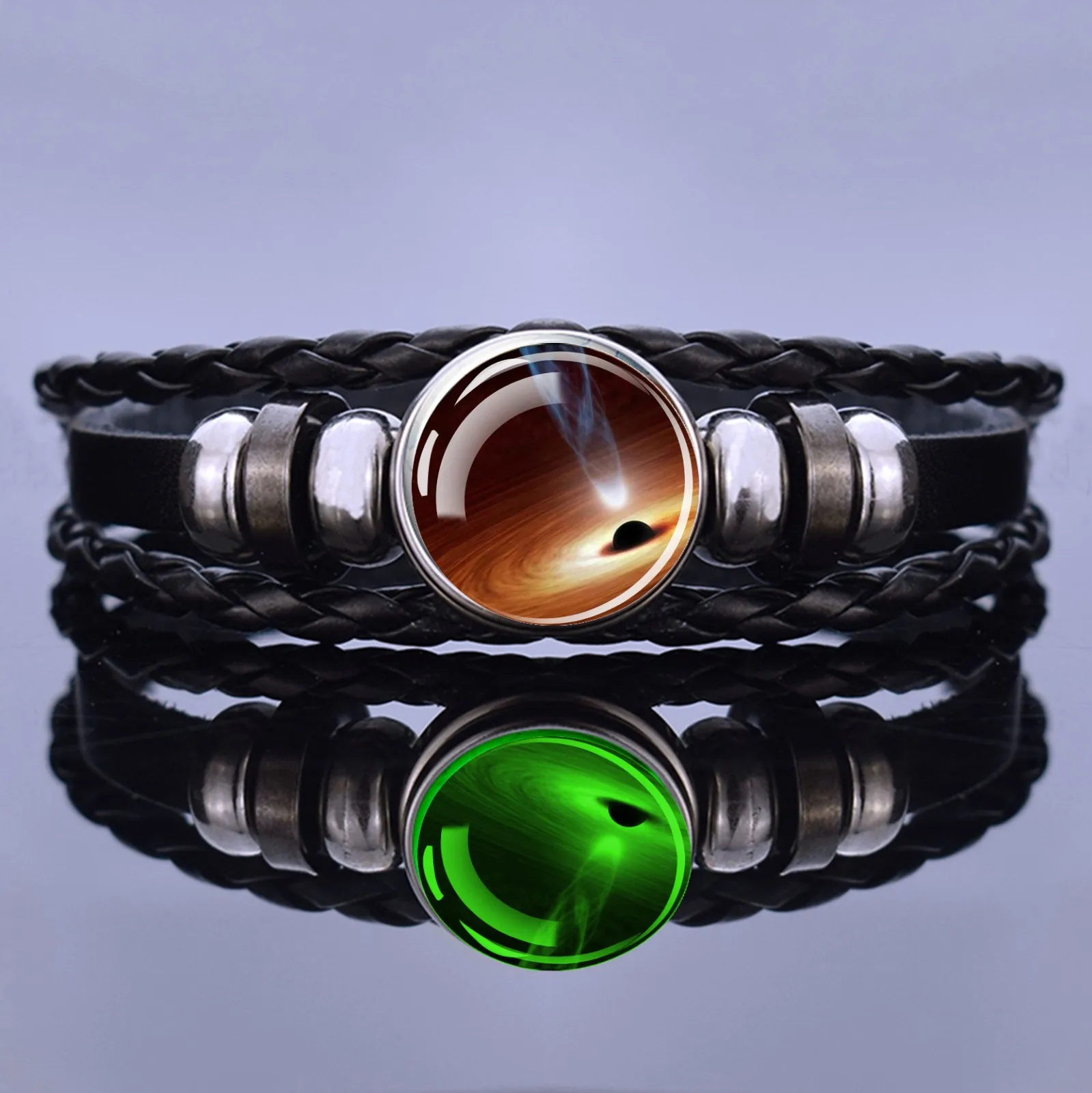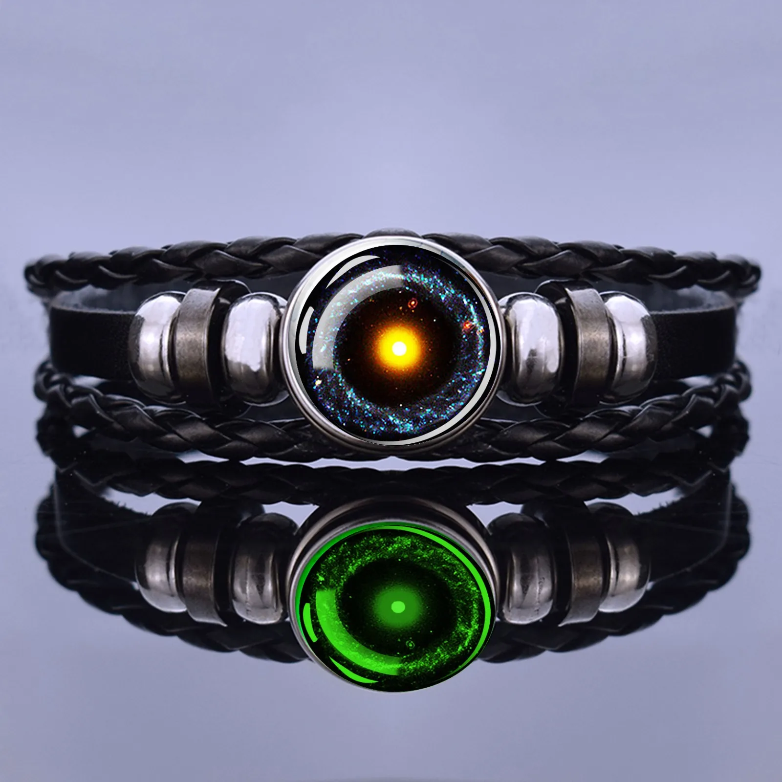 Браслет Esspoc Steampunk Galaxy для женщин и мужчин, ювелирные изделия, светящийся стеклянный кабошон, черные кожаные браслеты ручной работы, Pulseras Mujer