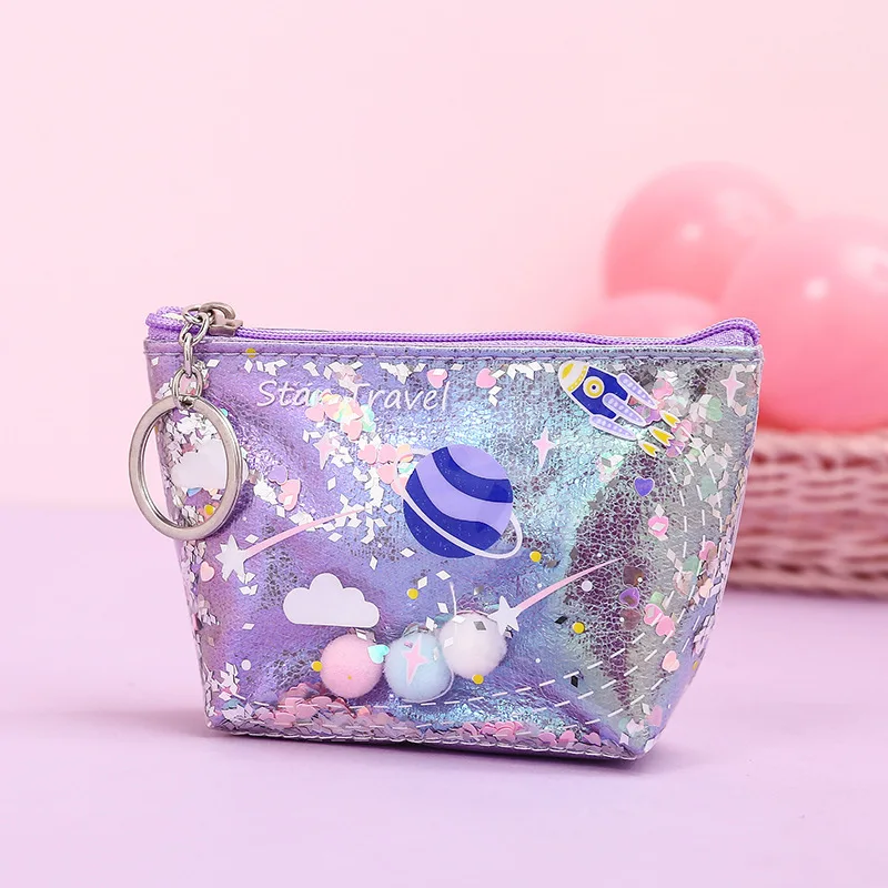 Новый мини-кошелек с сыпучим песком, голографические кошельки из ПВХ для женщин и девочек, студенческий кошелек для мелочи, лазерный держатель для карт для детей
