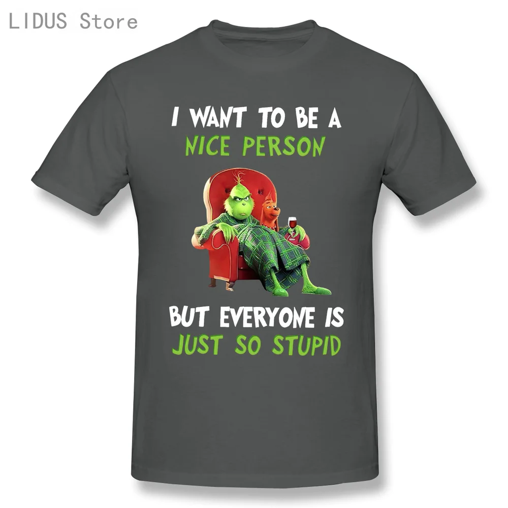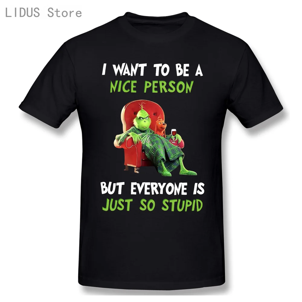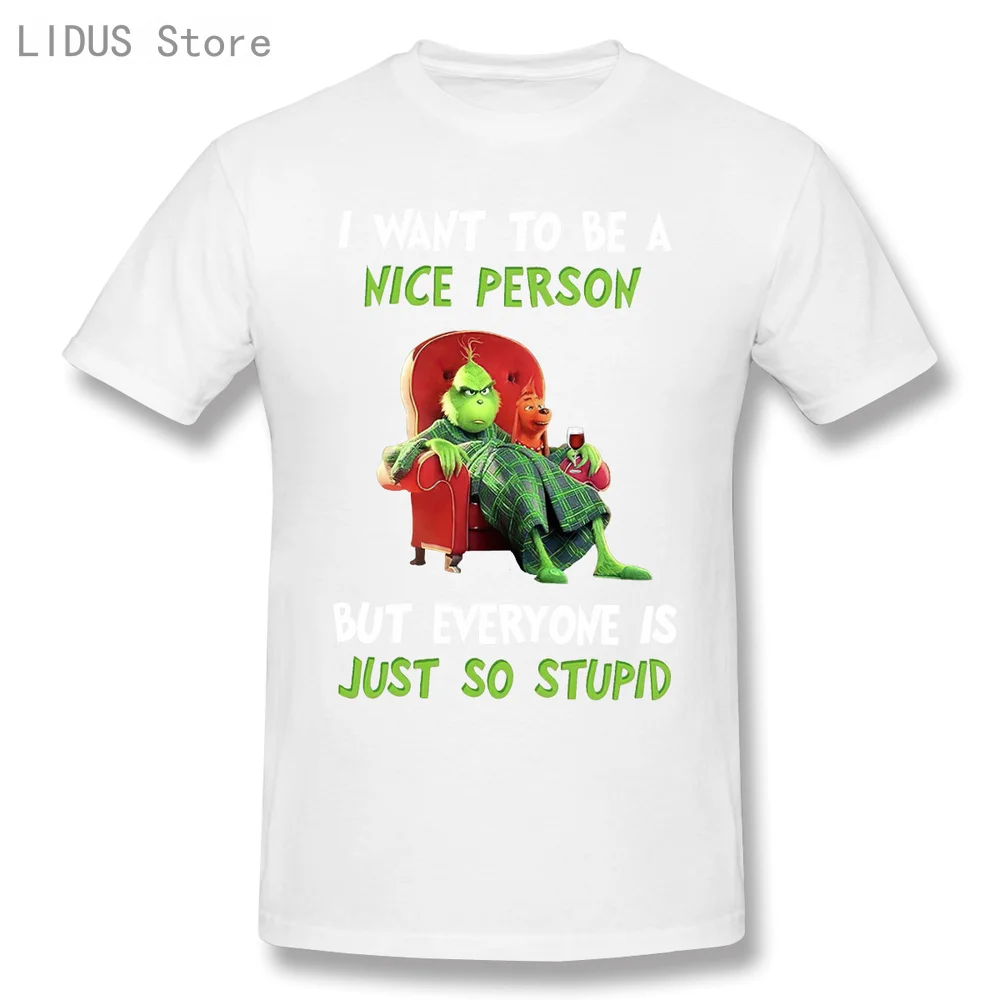Я хочу быть хорошим человеком, но все так глупо. Забавная футболка Grinch. Хлопковая футболка унисекс с коротким рукавом и круглым вырезом