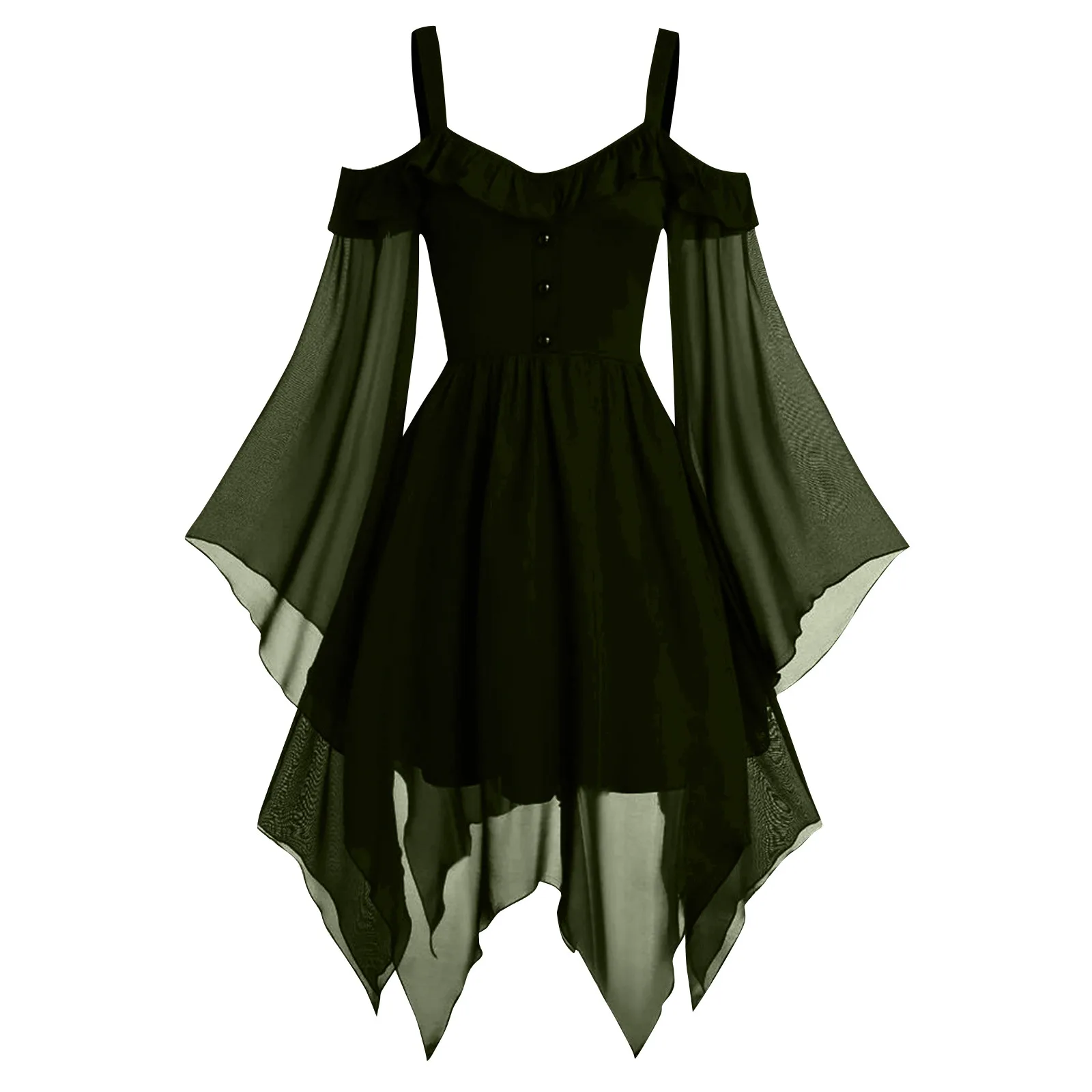Женское Сетчатое платье Y2k, асимметричное платье с открытыми плечами и пуговицами, с лентами, прозрачное, в готическом стиле