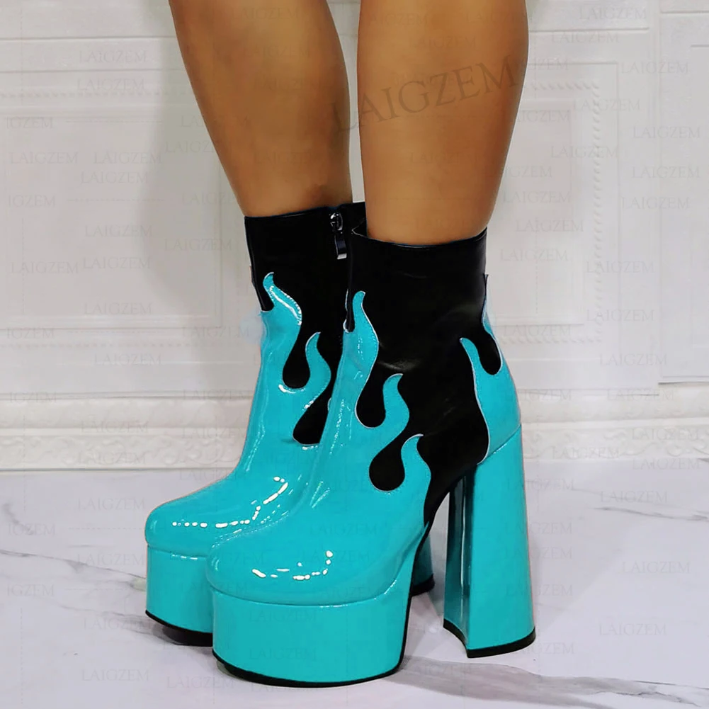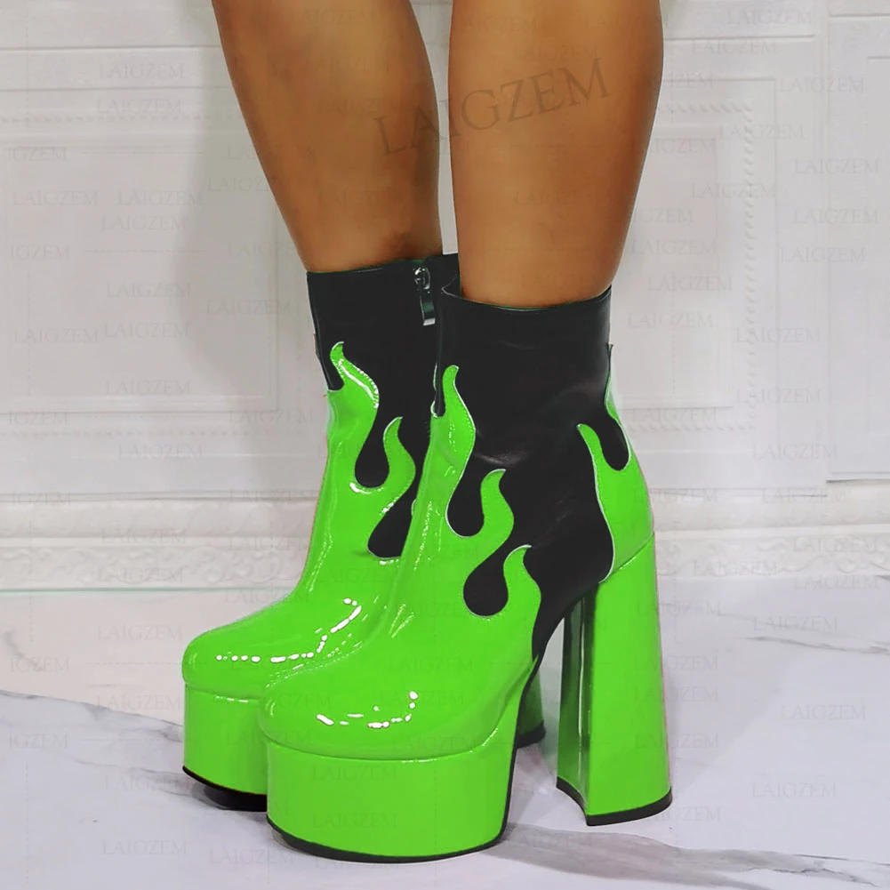 SEIIHEM/женские ботильоны на платформе; Ботинки на молнии с круглым носком на высоком квадратном каблуке; Обувь унисекс в стиле пэчворк; Женская обувь; Большие размеры 41, 42, 44, 47