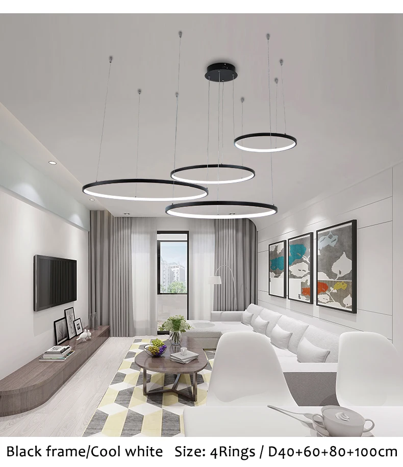 Светодиодный ные люстры для гостиной, столовой, кухни, 100 см, круглые кольца, подвесная люстра, декоративное освещение для помещений