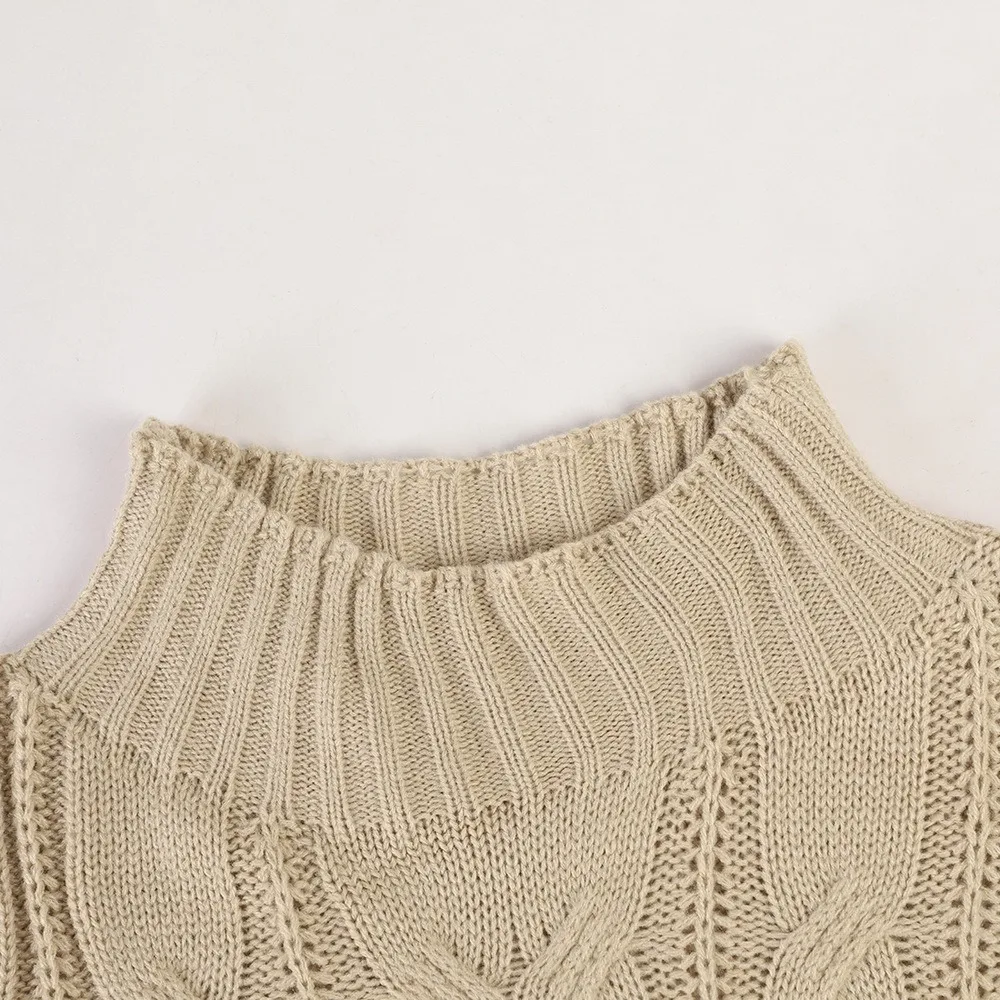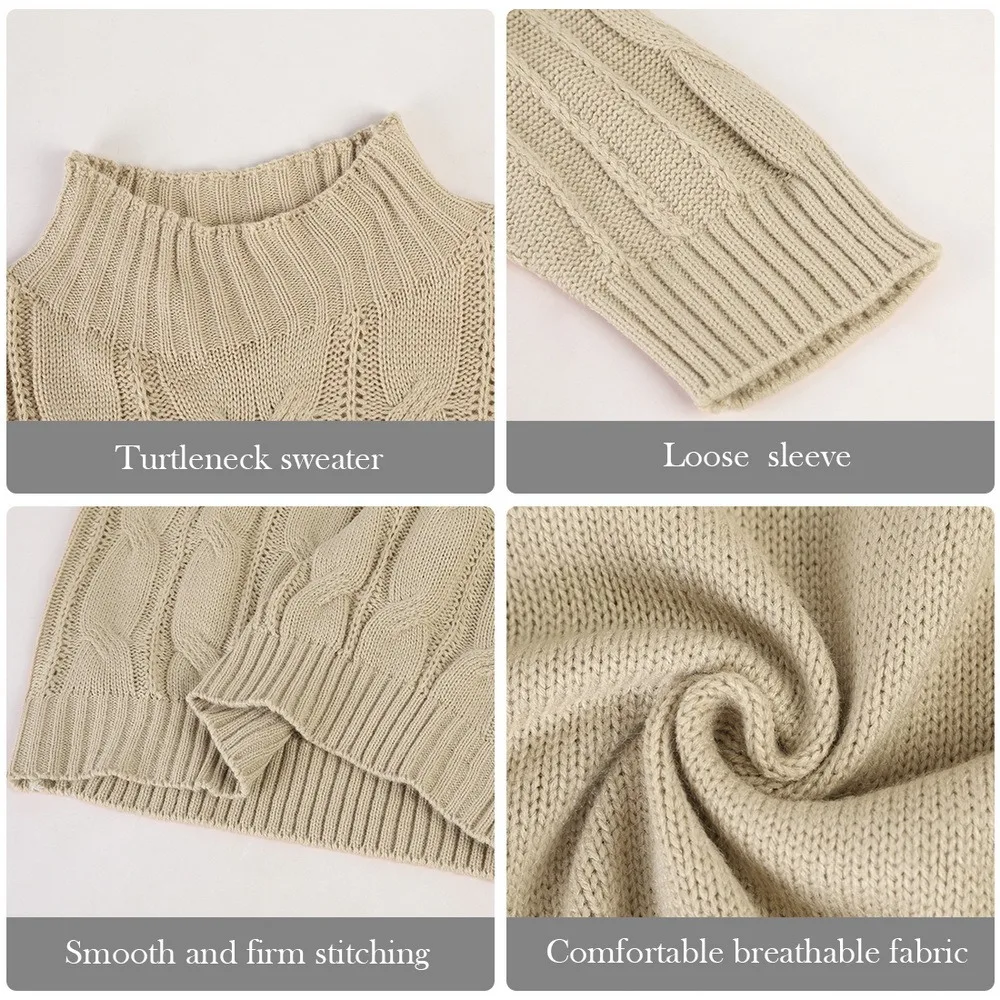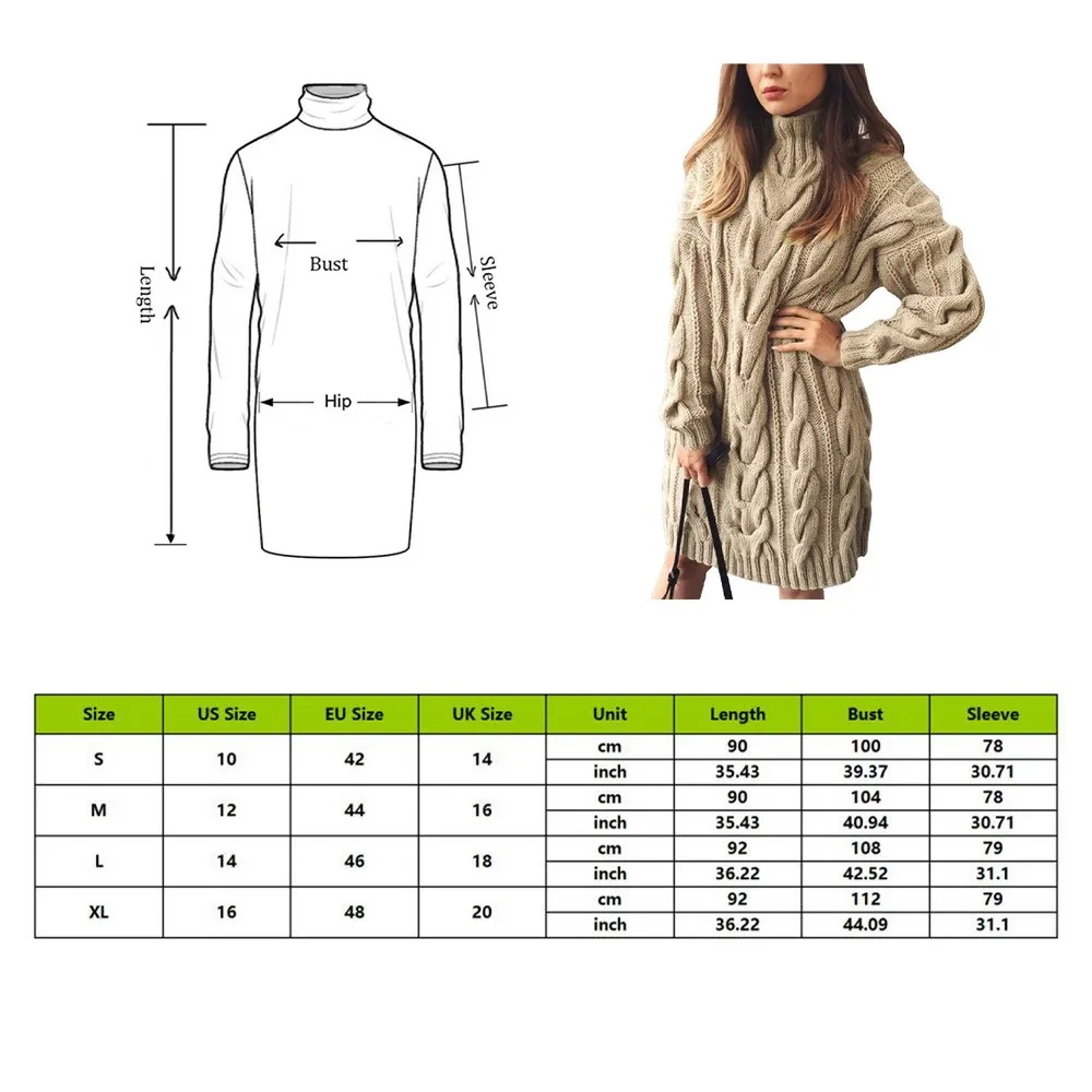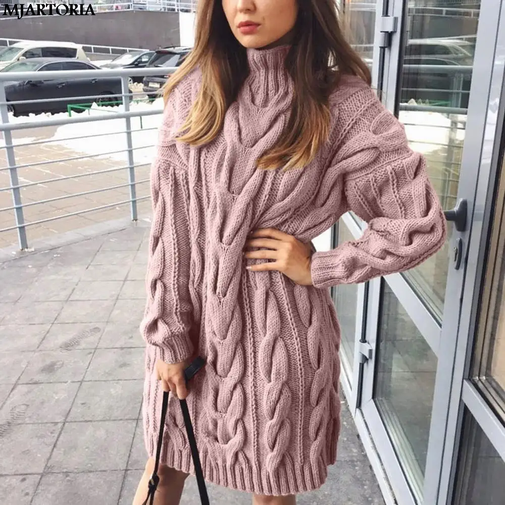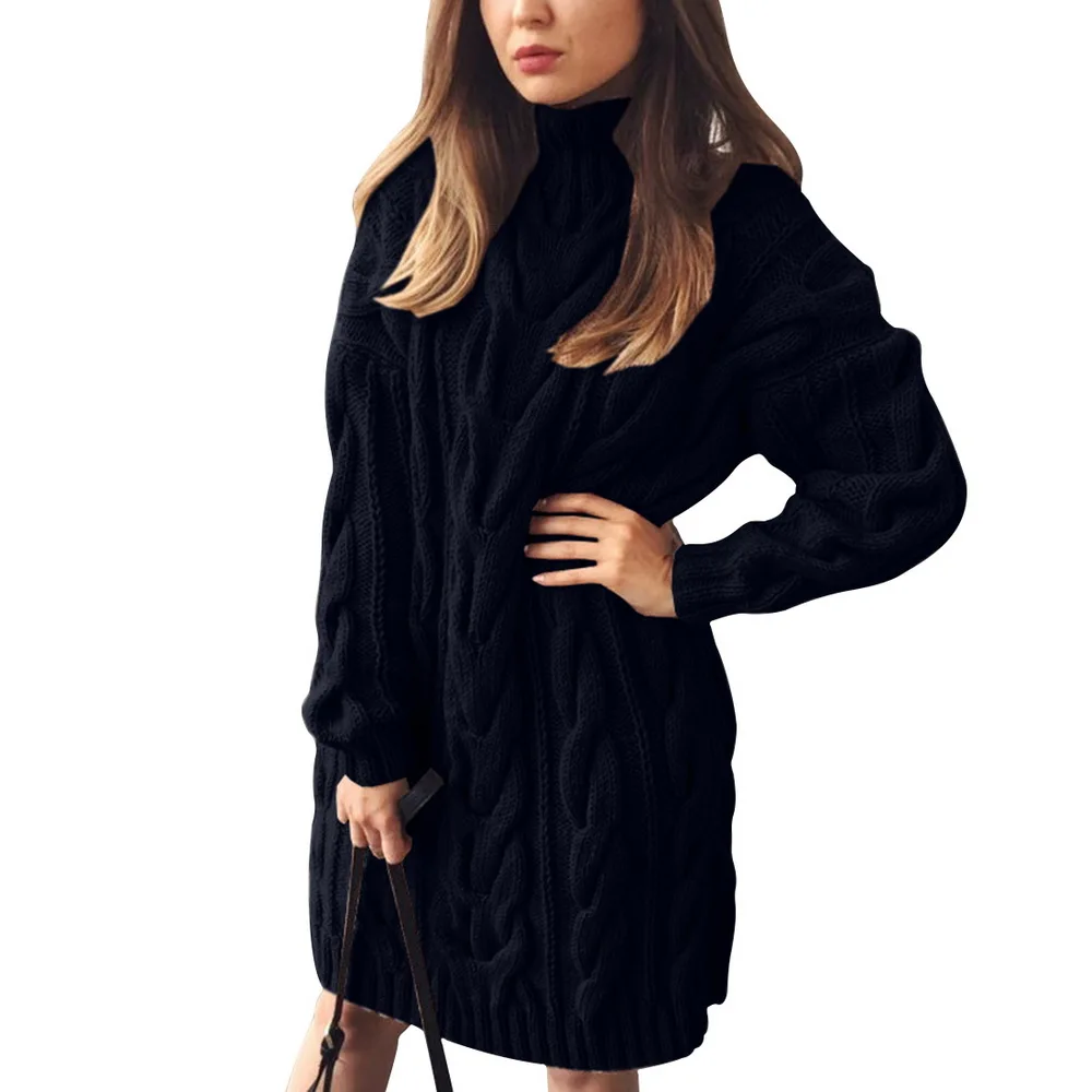 Женское трикотажное платье-свитер с высоким воротником и длинным рукавом