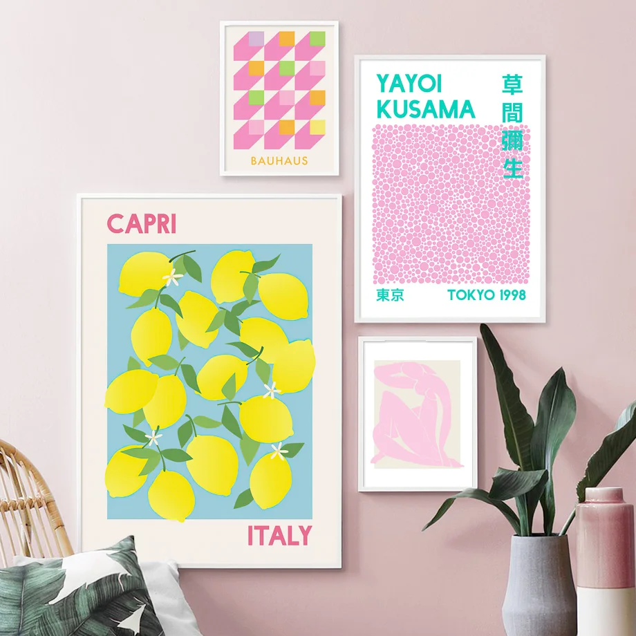 Абстрактный Водолей розовый синий Bauhaus фруктовый настенный художественный Принт Холст Картина скандинавский плакат Настенные картины для гостиной домашний декор