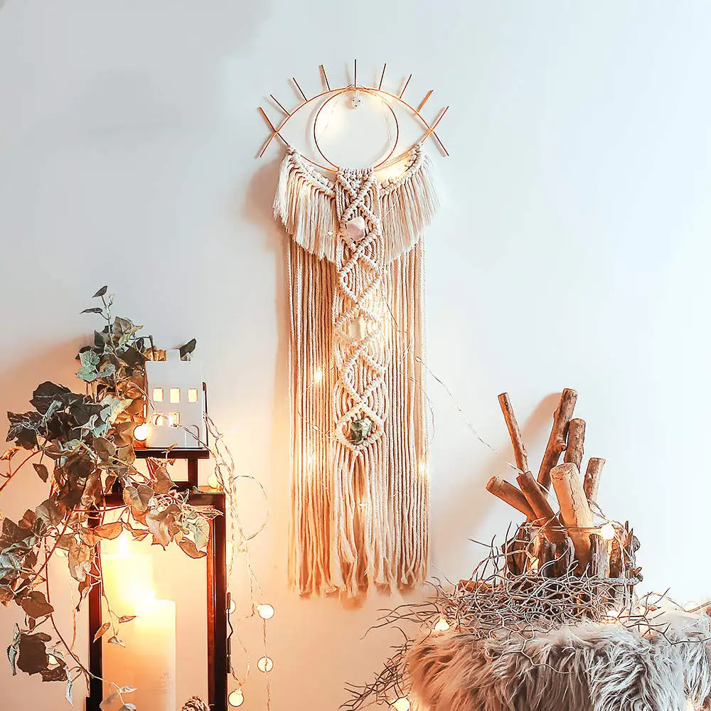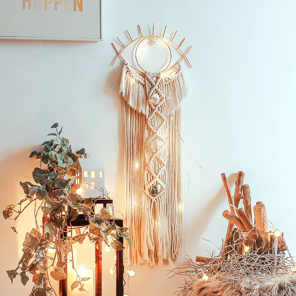 Макраме настенная подвеска сглаза макраме Ловец снов с кристаллами подвеска в стиле бохо для спальни украшение для дома крафт