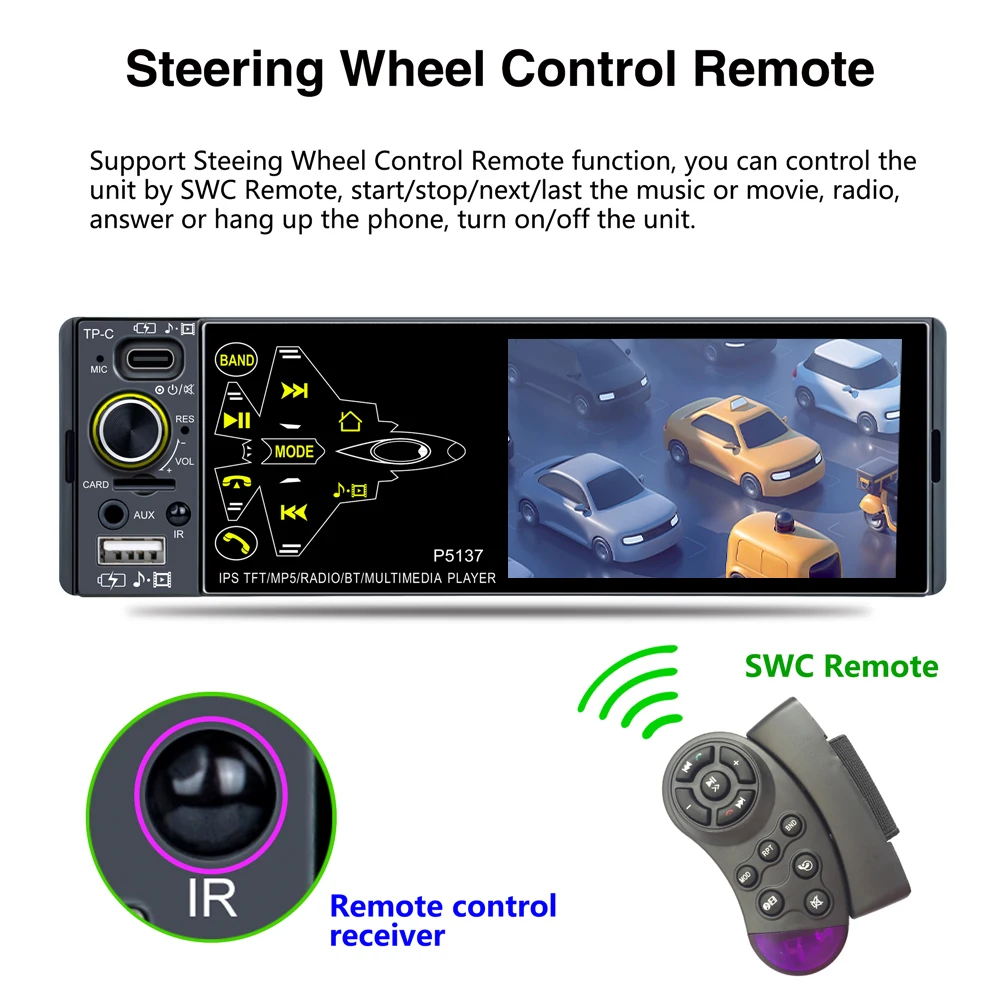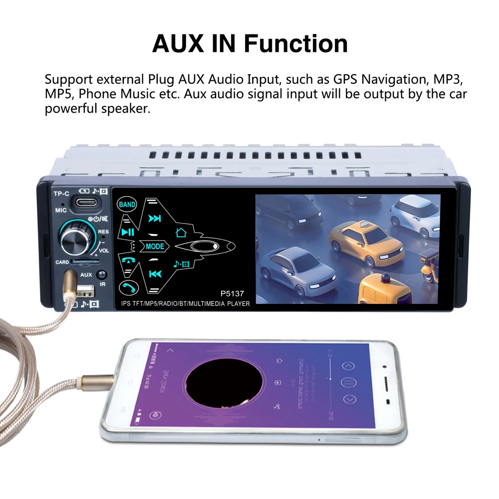 Автомагнитола 1 Din стерео MP5 MP3 Bluetooth-совместимая 50 Вт * 4 ...