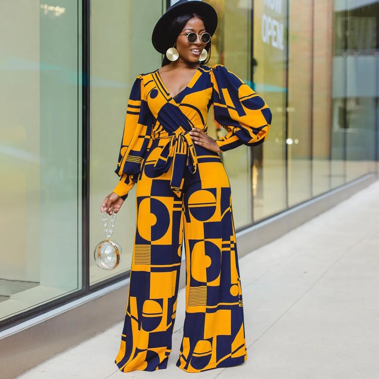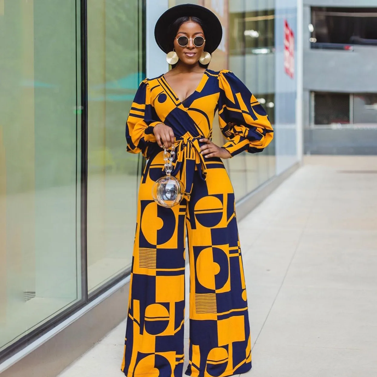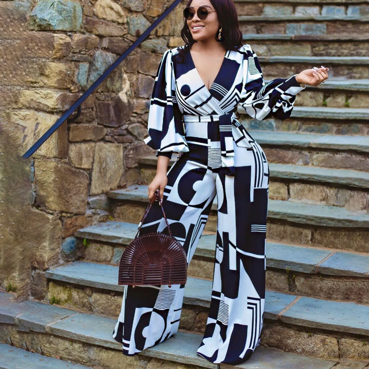 Женский комбинезон Дашики, синий комбинезон с широкими штанинами, с V-образным вырезом, в африканском стиле