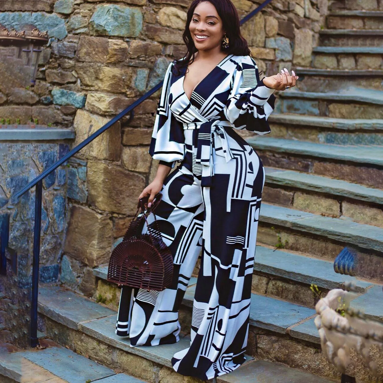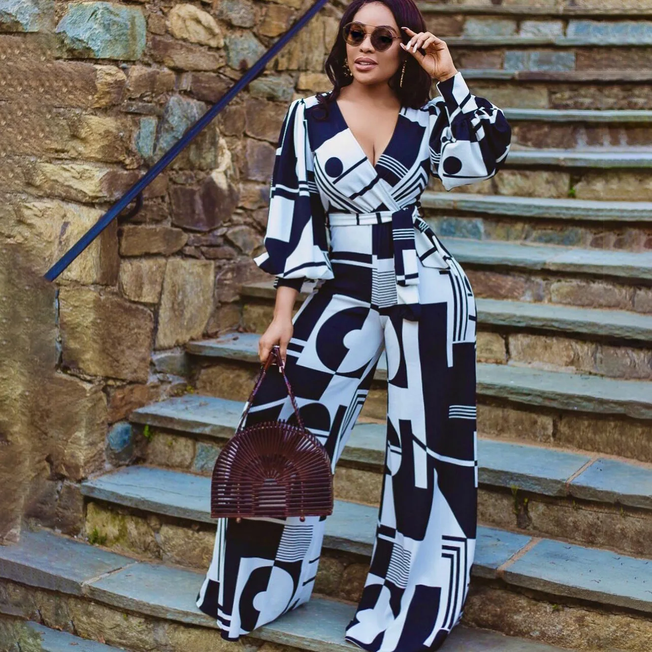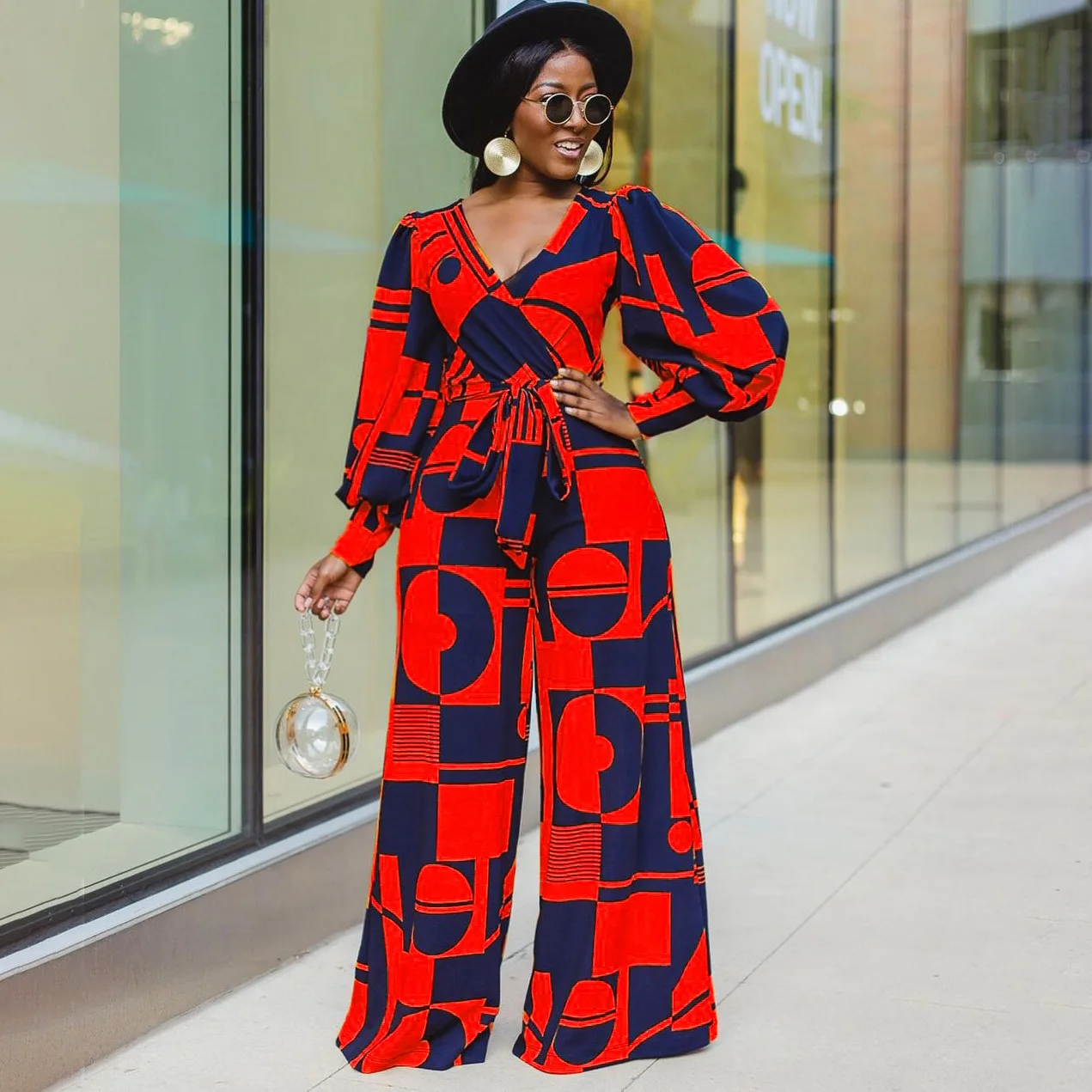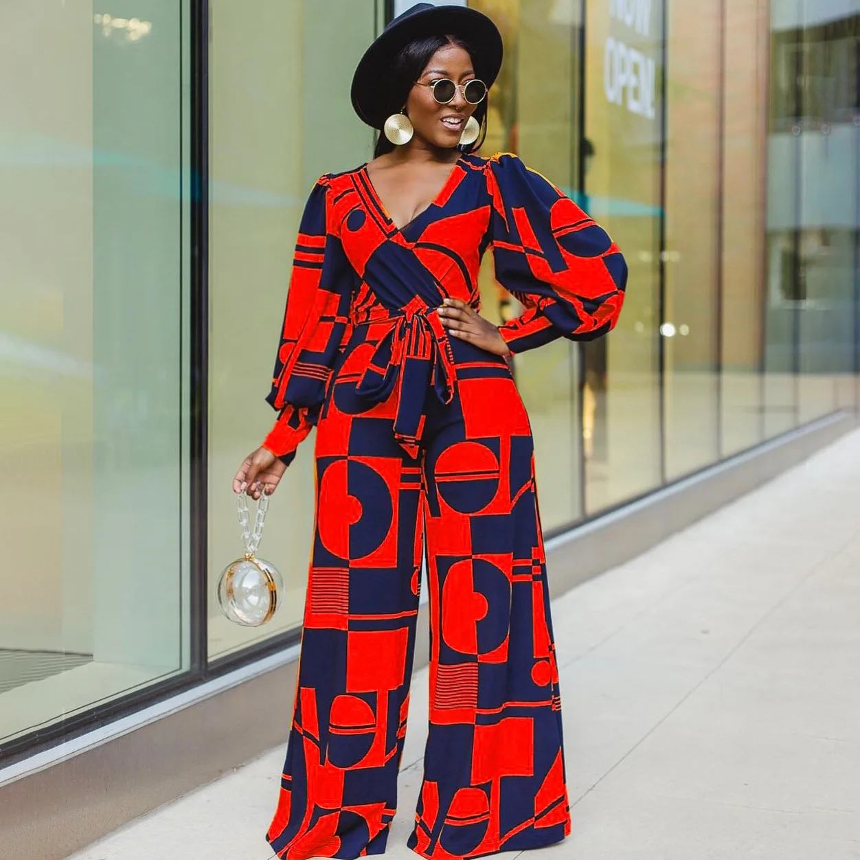 Женский комбинезон Дашики, синий комбинезон с широкими штанинами, с V-образным вырезом, в африканском стиле