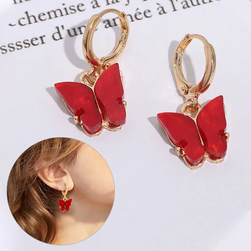 Очаровательные акриловые женские серьги-бабочки, 1 пара, висячие серьги-кольца, ювелирные изделия, подарок