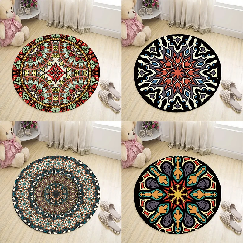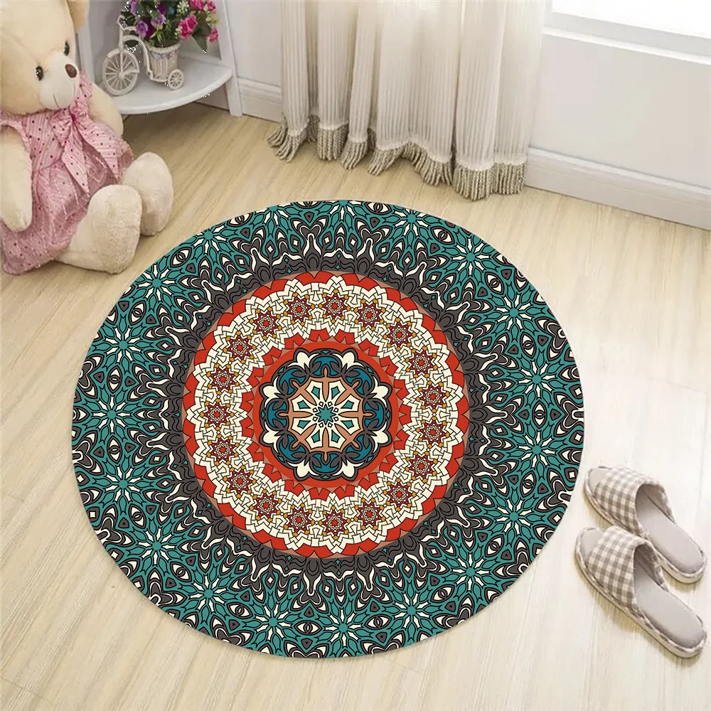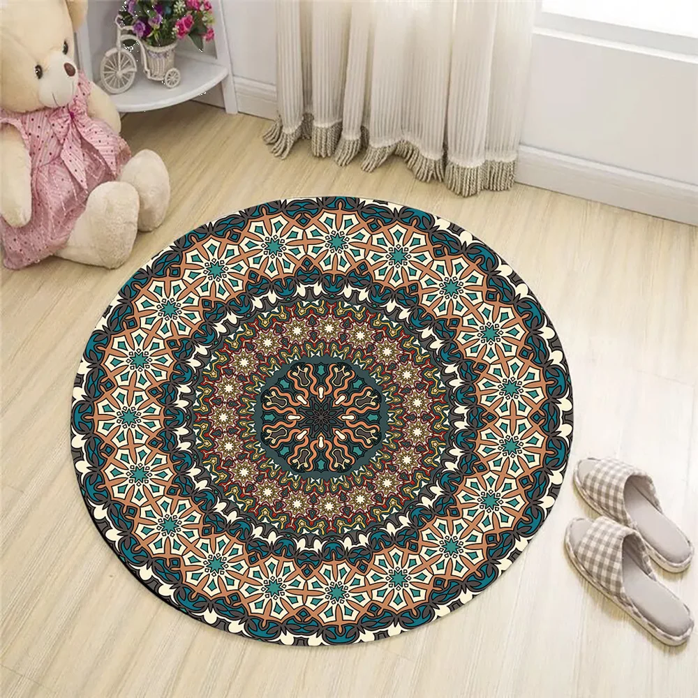 Boho коврик Круглый Пол индийская Мандала домашний коврик для входной двери Нескользящие богемные напольные коврик в ванную комнату кухня 60x60cm