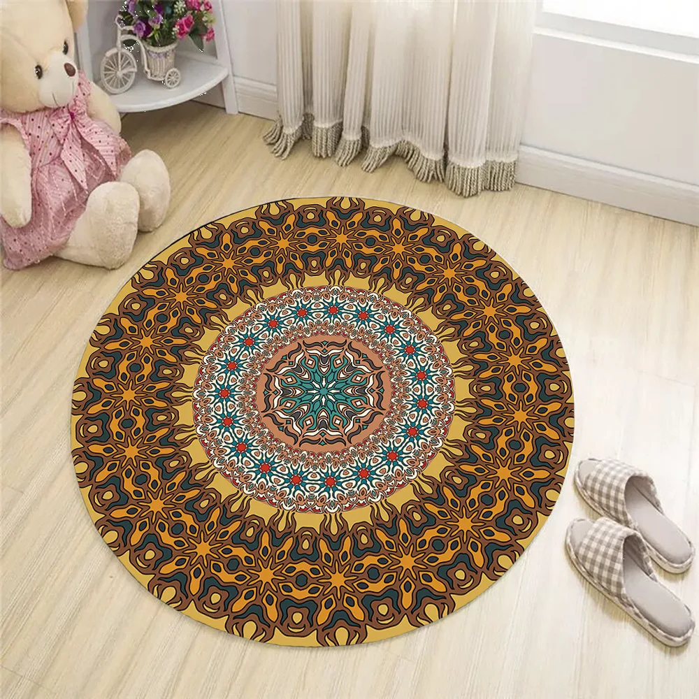 Напольный круглый коврик в стиле бохо, Индия, мандала, домашний коврик для входной двери, противоскользящий, искусственная кожа, кухня 60x60 см