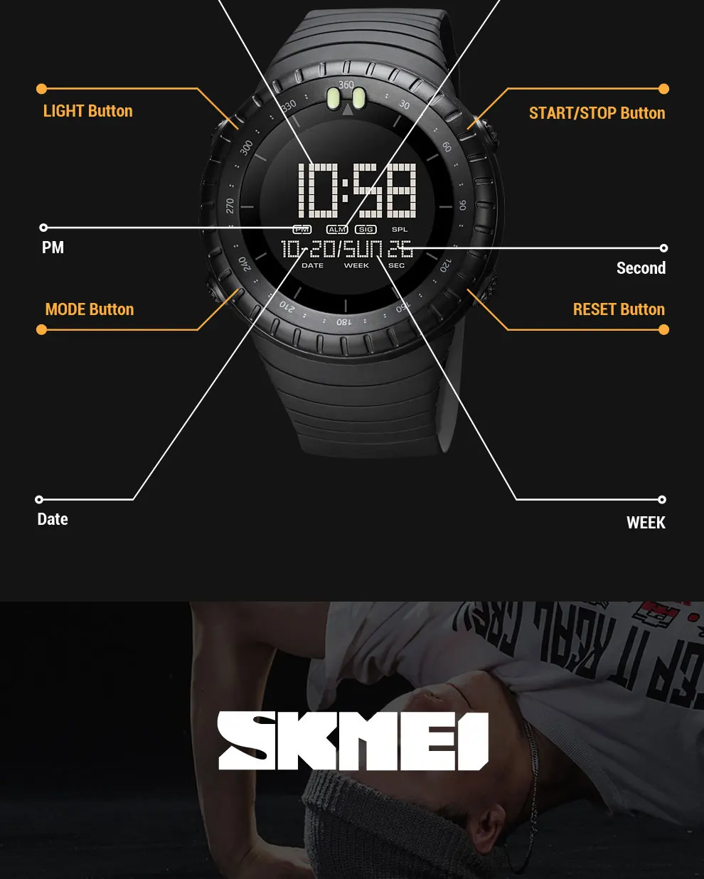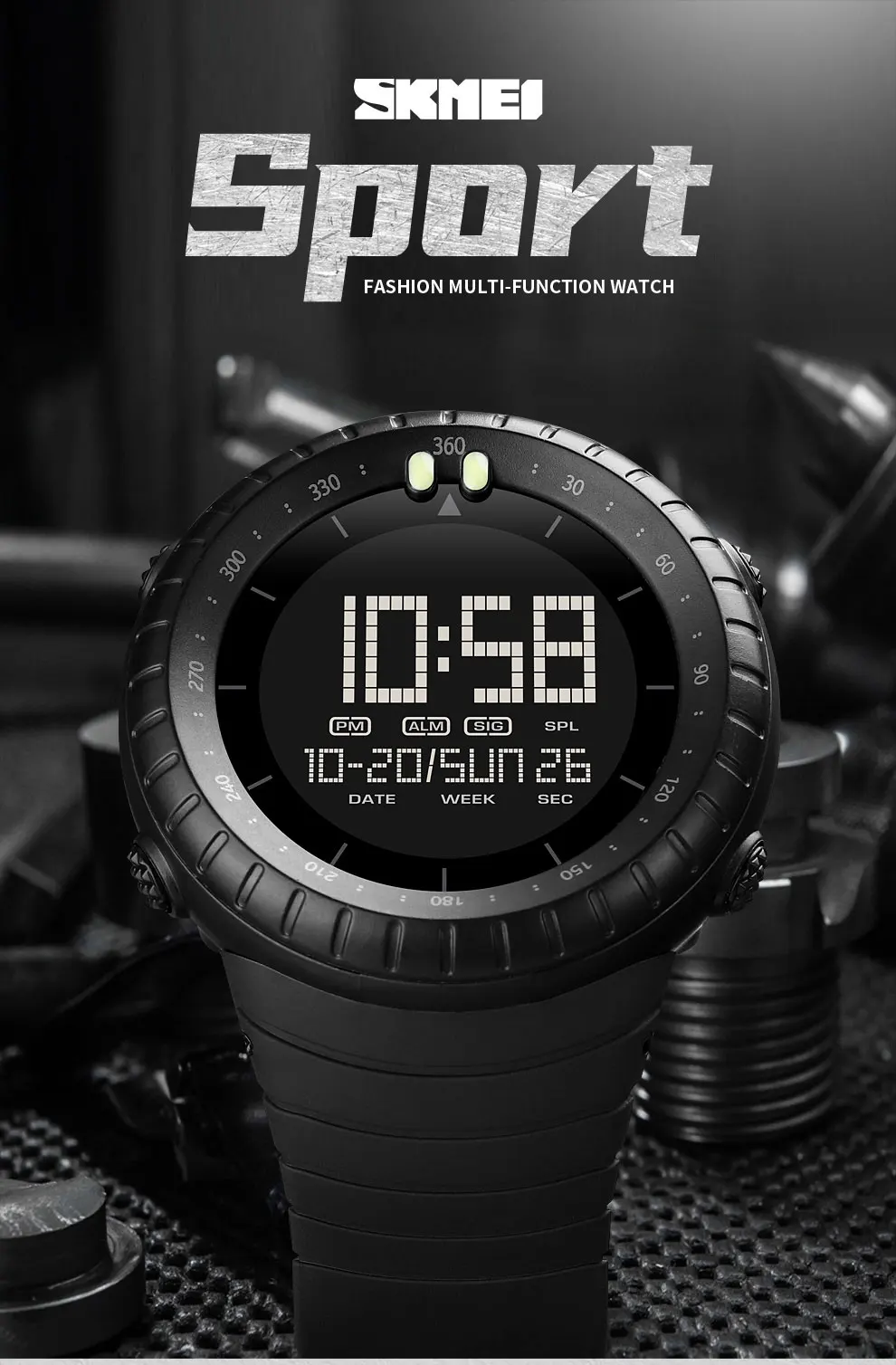 Часы наручные SKMEI Мужские Цифровые, спортивные многофункциональные водонепроницаемые электронные в стиле милитари, с хронографом и будильником