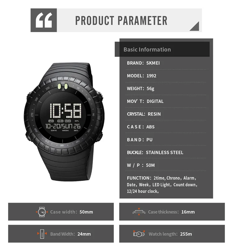 Часы наручные SKMEI Мужские Цифровые, роскошные спортивные светодио...
