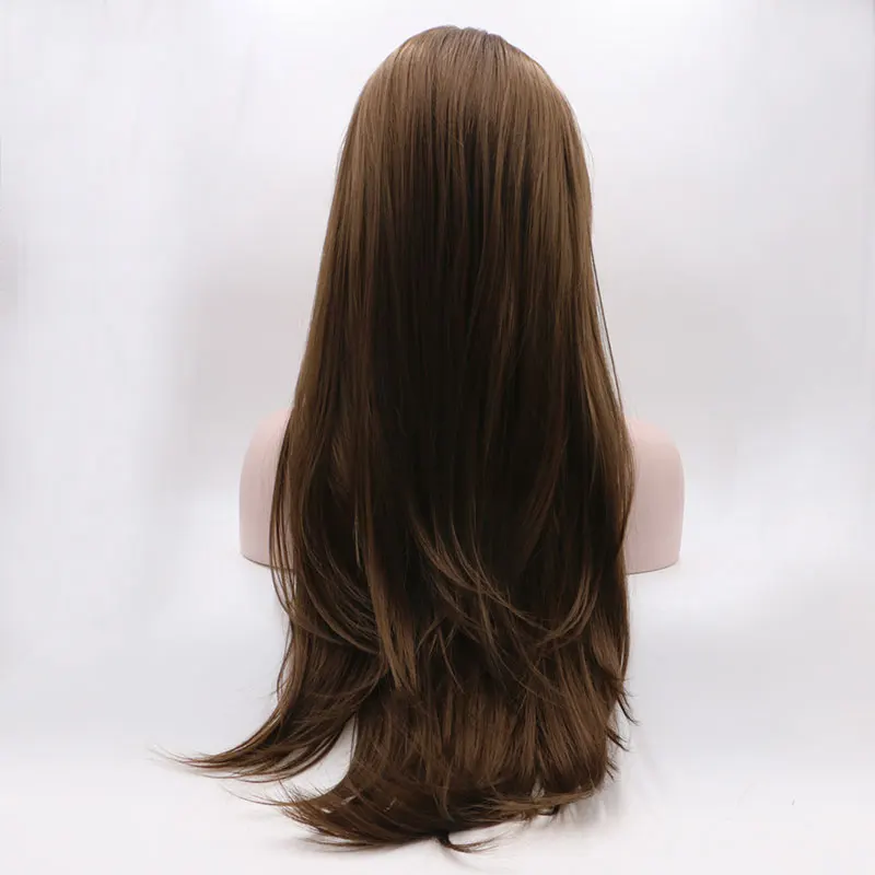 Темный коричневый прямой синтетический кружевной передний парик от bomshell, термостойкие волосы из волокна, средний Parting для женщин, для повседневного Косплея