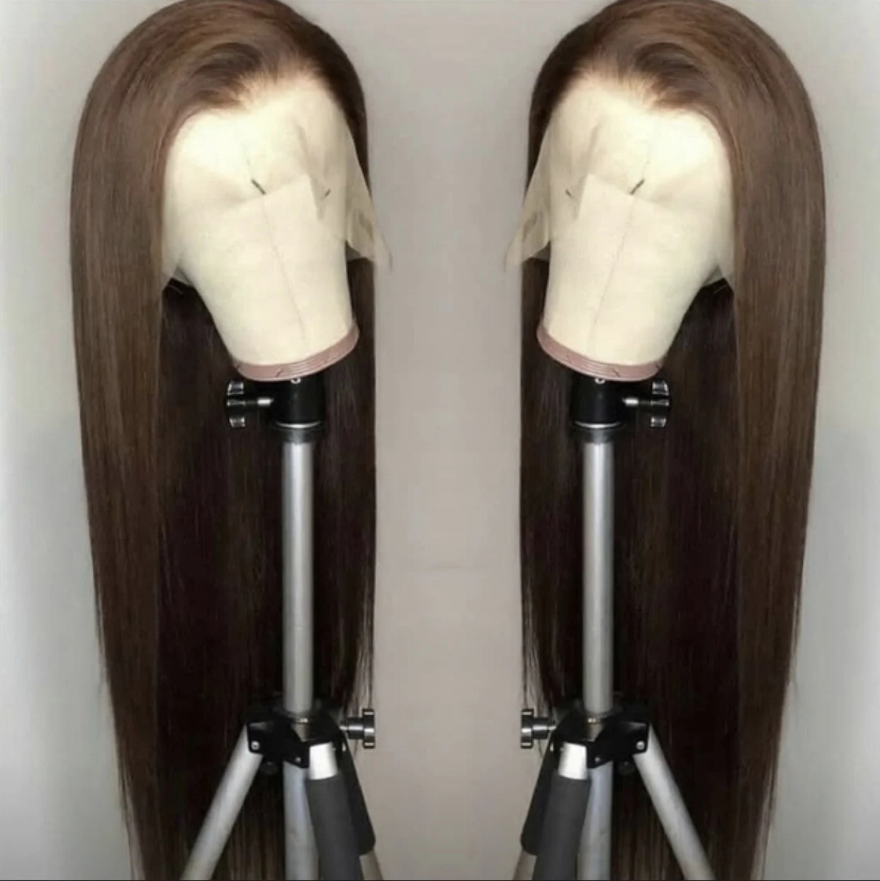 Темный коричневый прямой синтетический кружевной передний парик с э...
