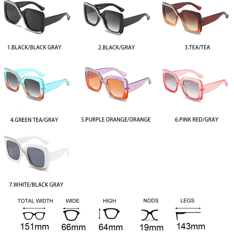 Модные квадратные солнцезащитные очки со стразами для женщин 2021 новые роскошные брендовые Дизайнерские Большие очки Уникальные градиентные черные солнцезащитные очки