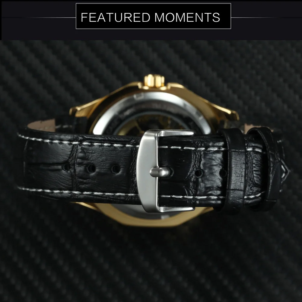 Великолепный внешний вид: часы имеют классическую черную кожу, выбитый циферблат и шестеренку, чтобы они выглядели благородно и привлекательно.