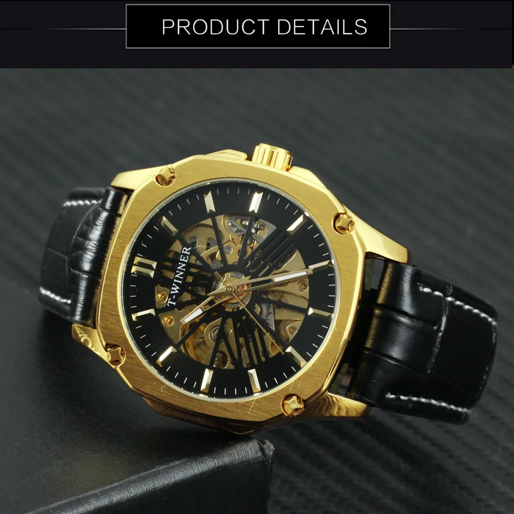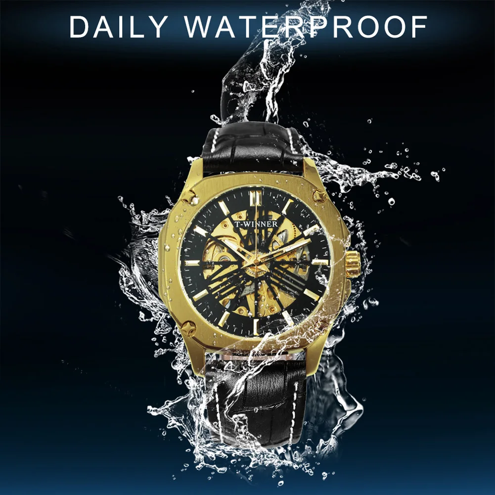 Мужские механические наручные часы T-Winner, водонепроницаемые, автоматические, светящиеся, классические