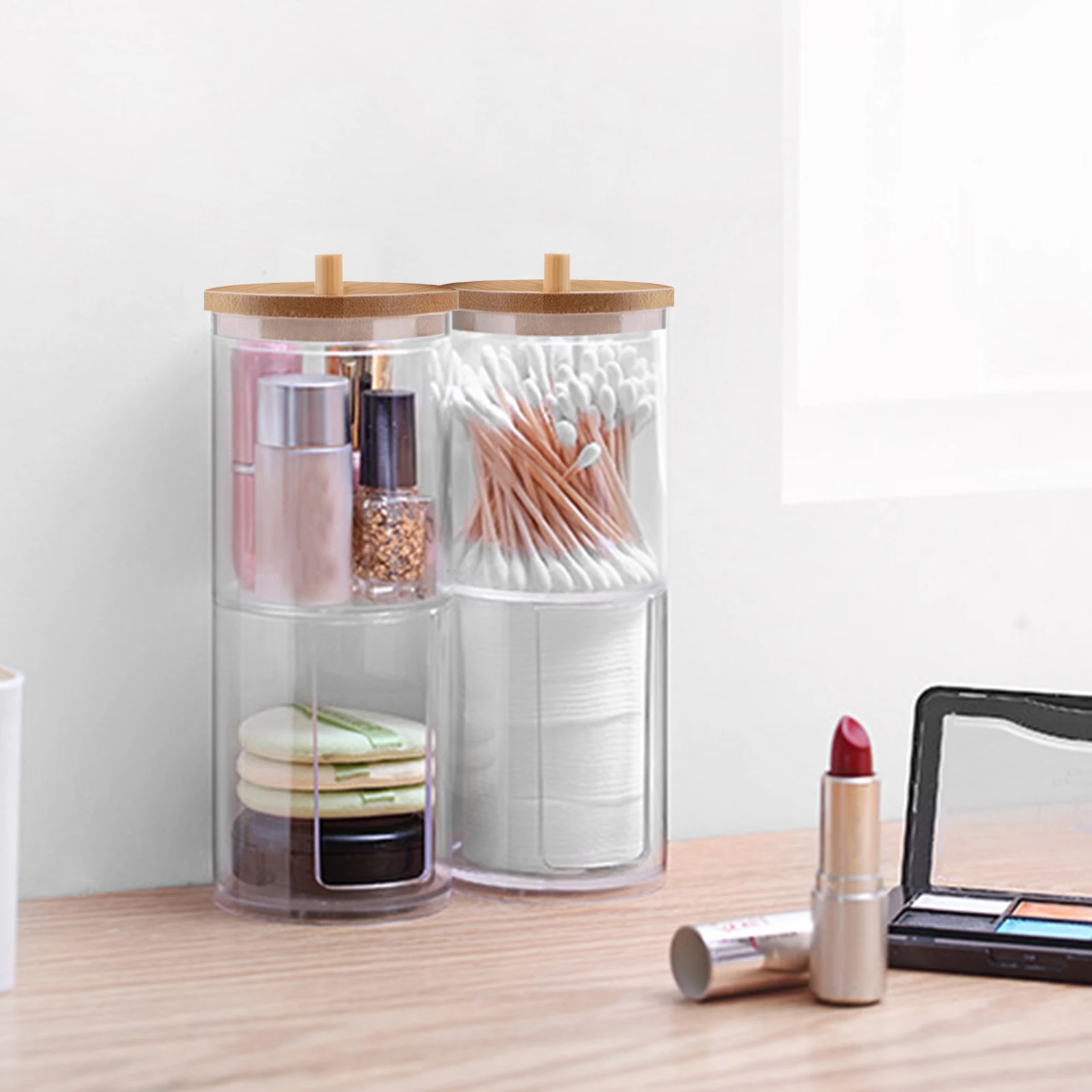 Коробка-органайзер из бамбука, прозрачная косметика, держатель хлопковых тампонов, пластиковый контейнер Qtip, органайзер для ванной комнаты # w