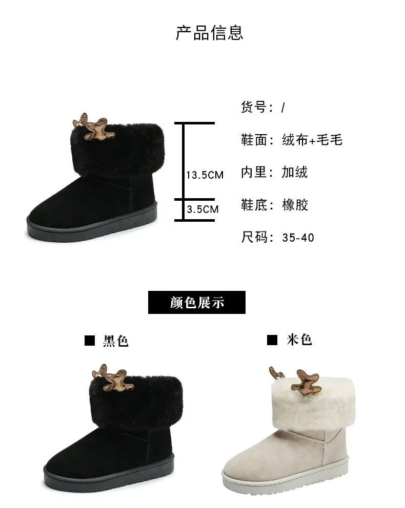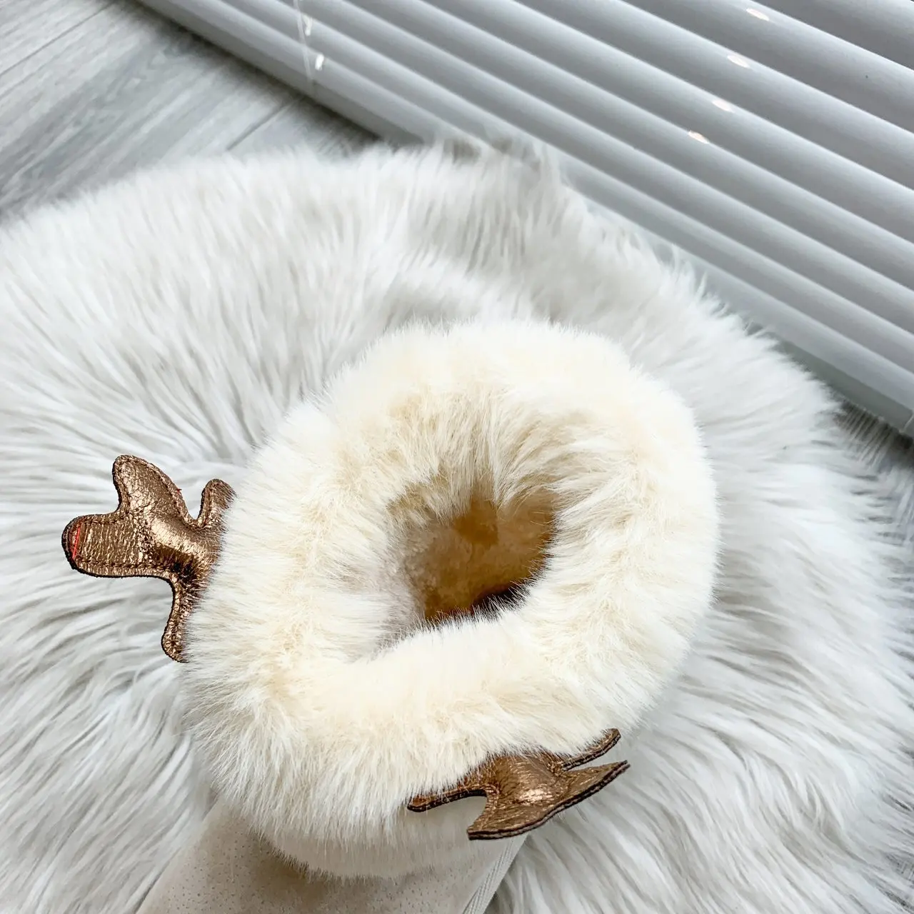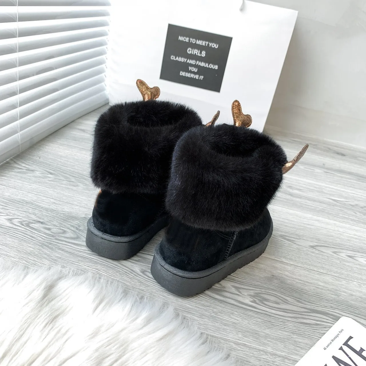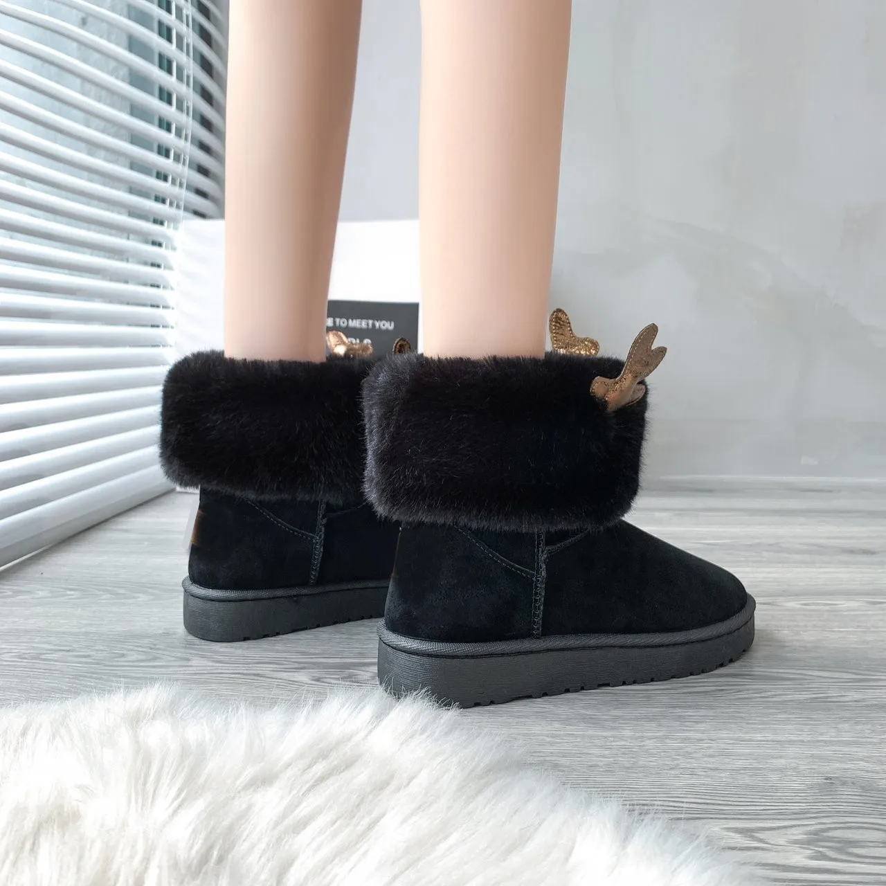 Новинка 2021, женские зимние ботинки, рождественский подарок для милой девушки, милый Рог лося с теплым ворсом, женская зимняя обувь, плюшевые ботильоны
